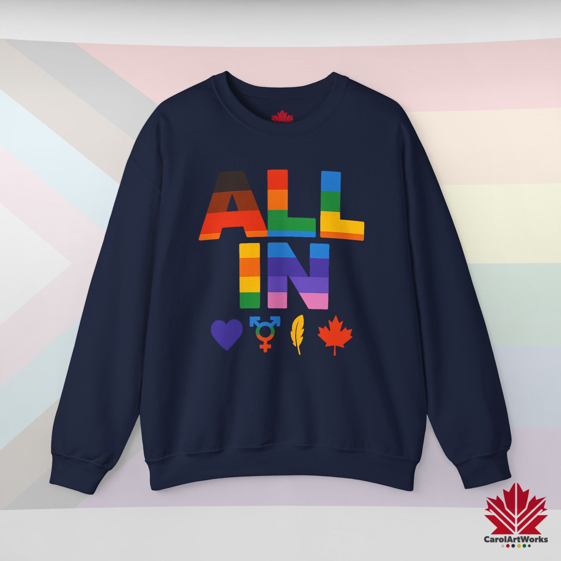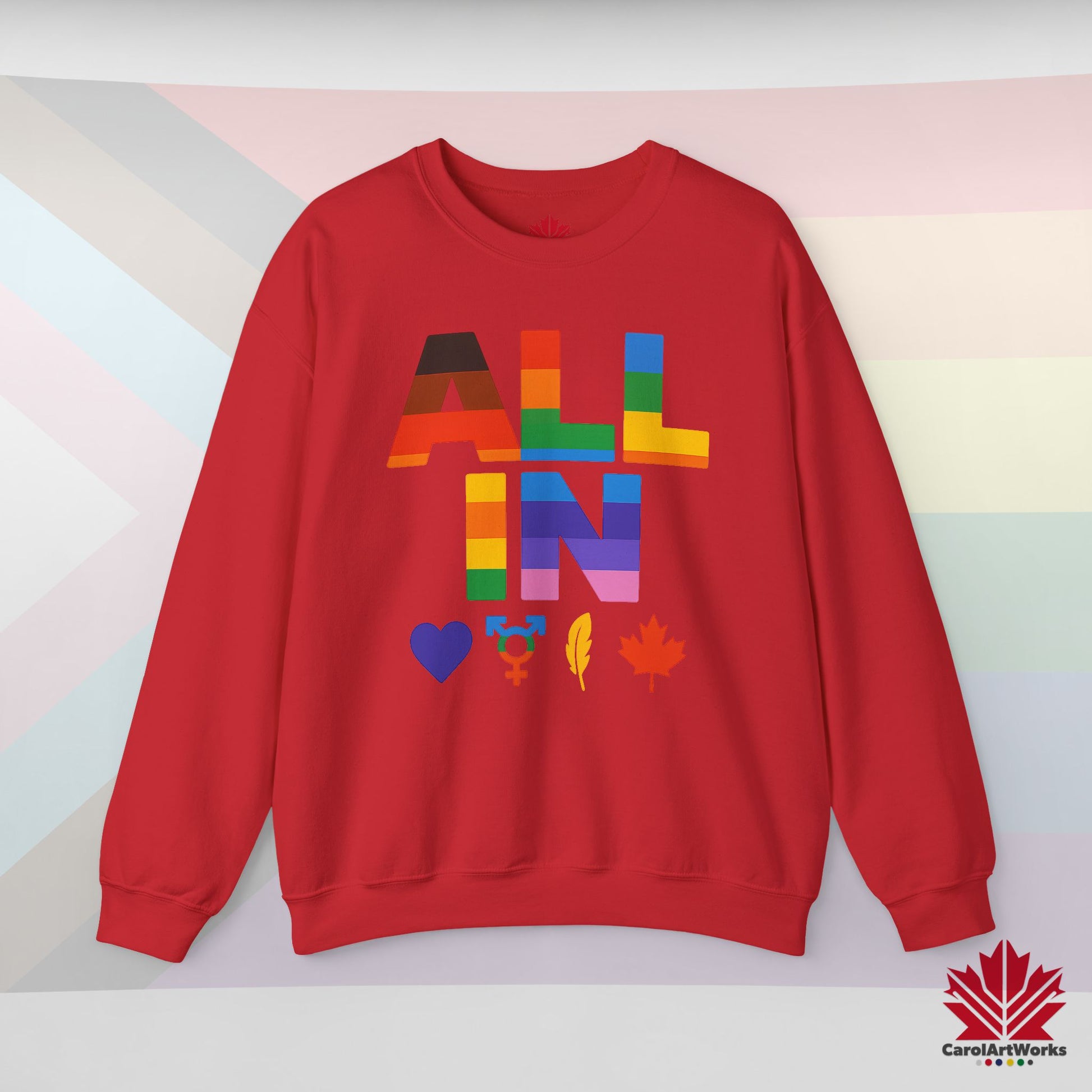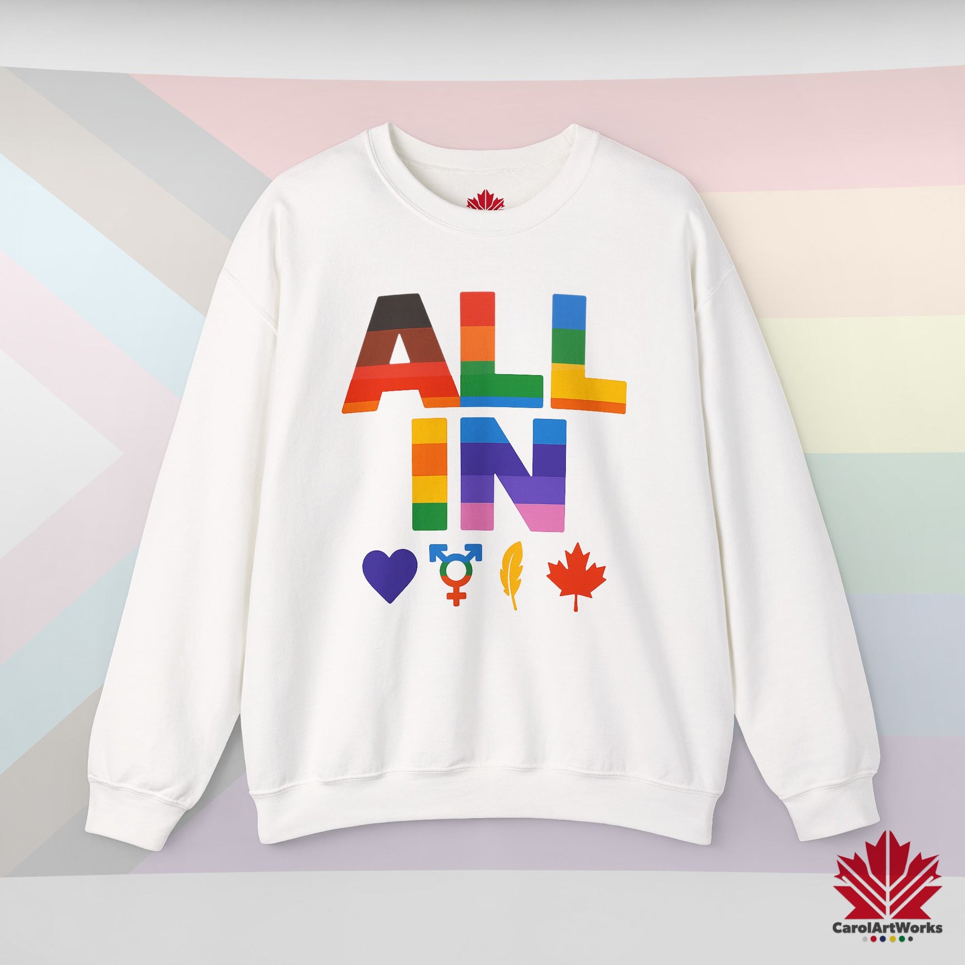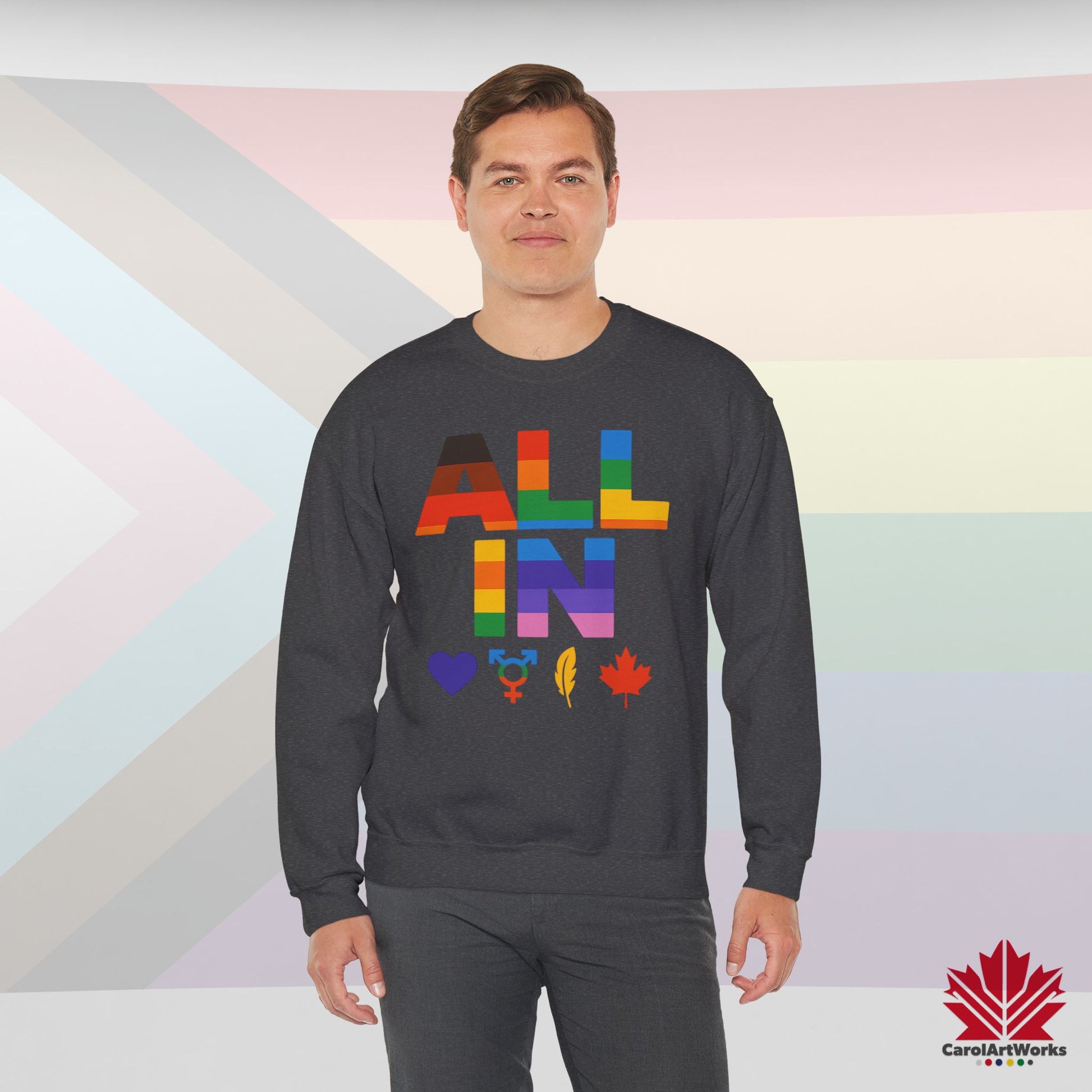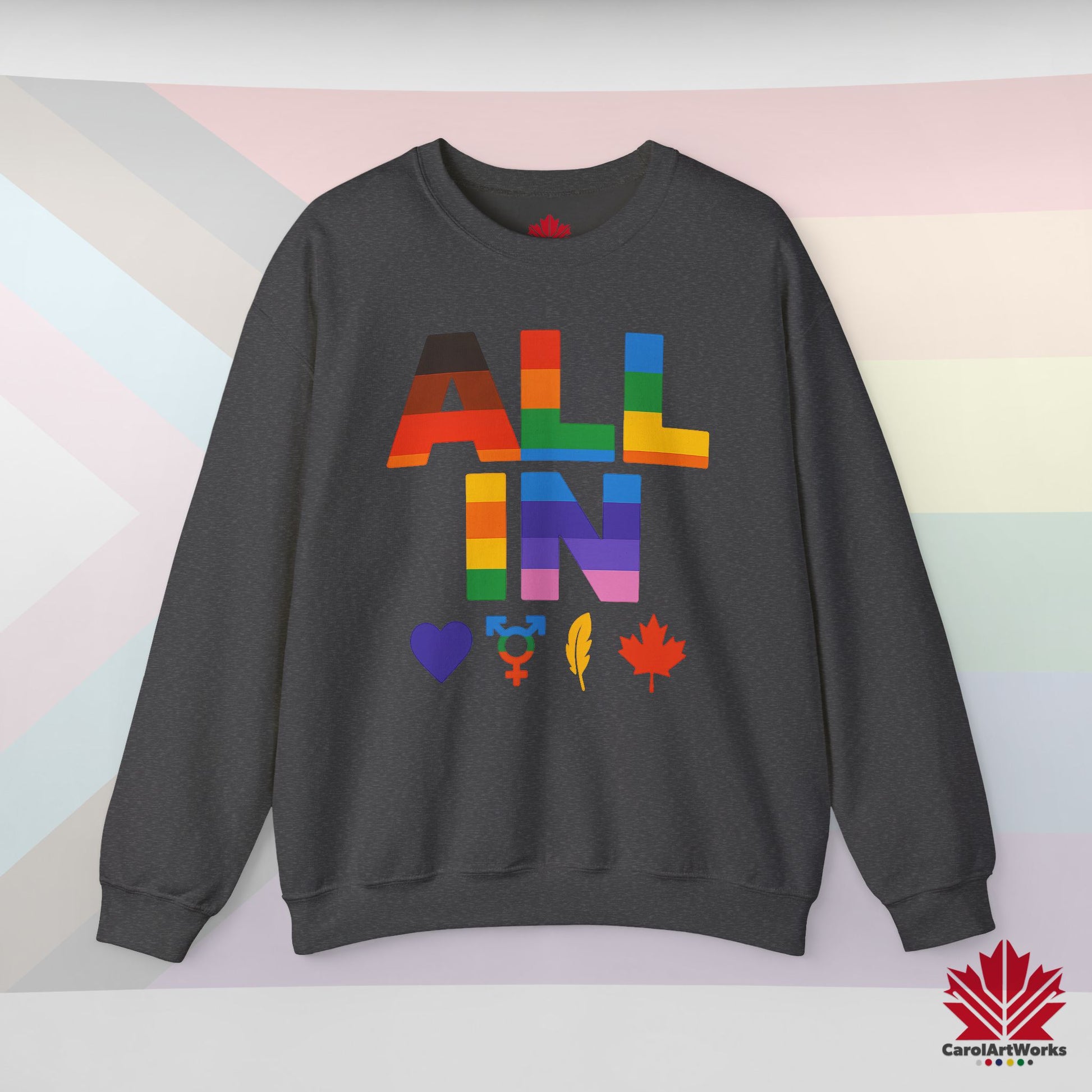 ALL IN Heart. Voice. Pride. - Pride Toronto Crewneck Sweatshirt – Unisex Fit – Cozy & Bold