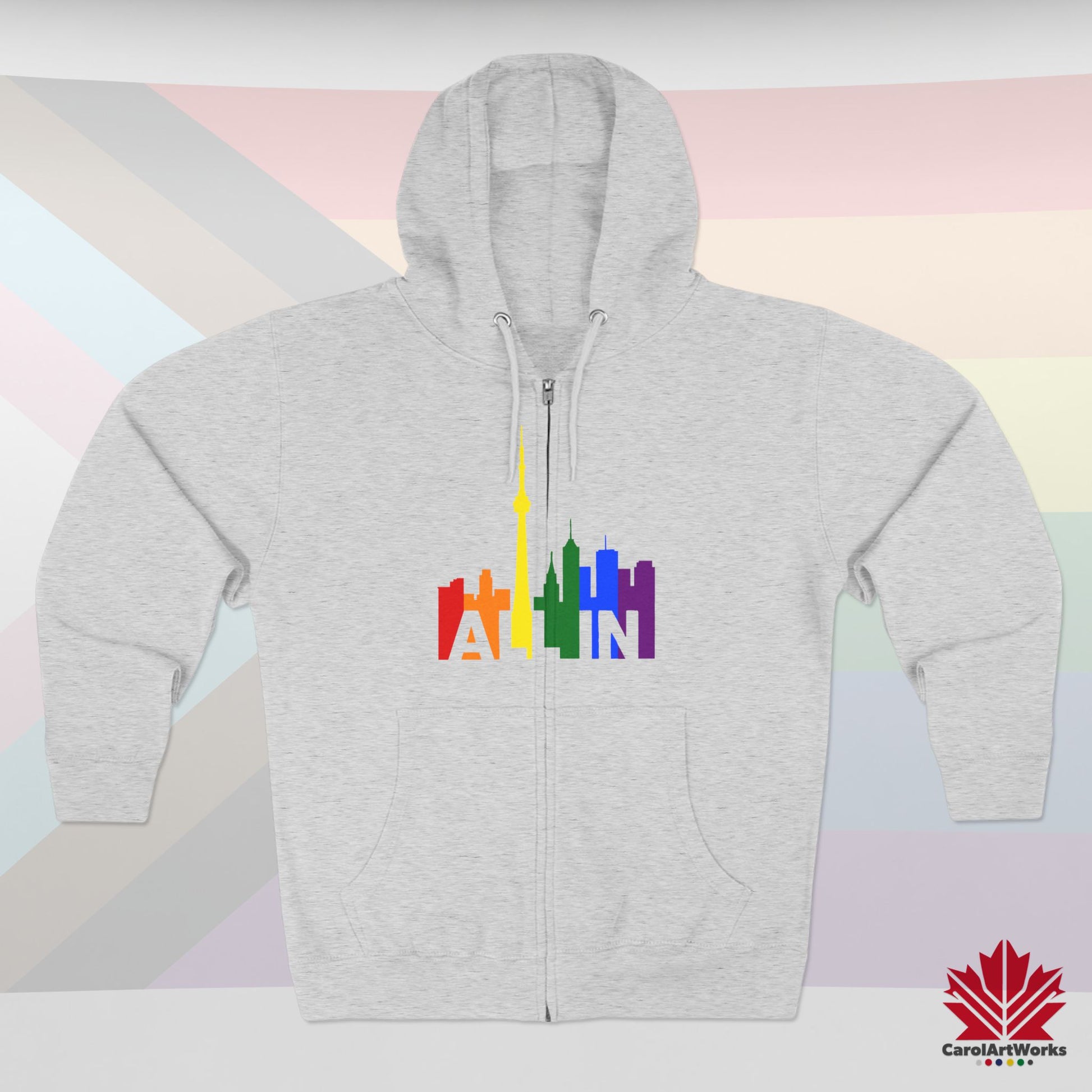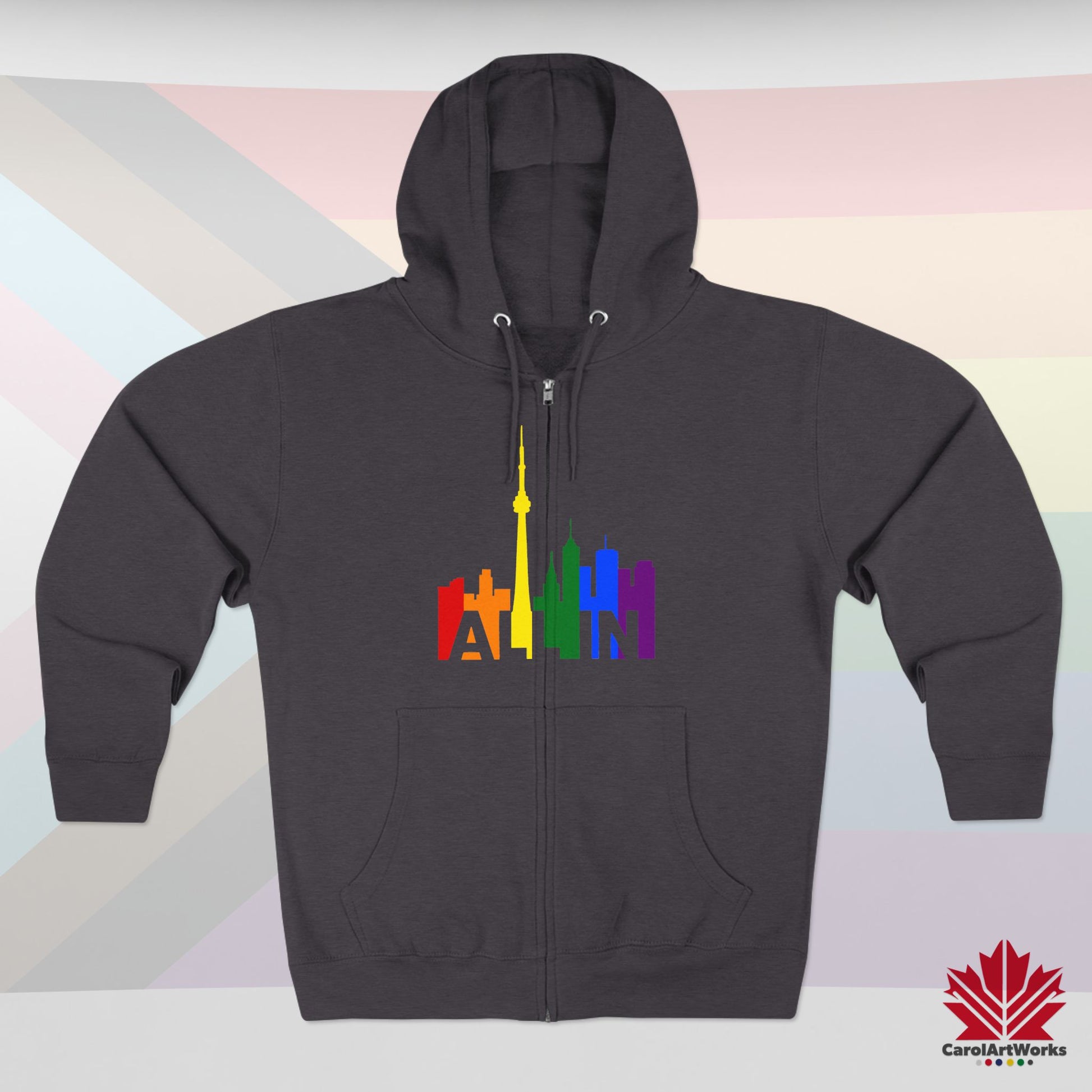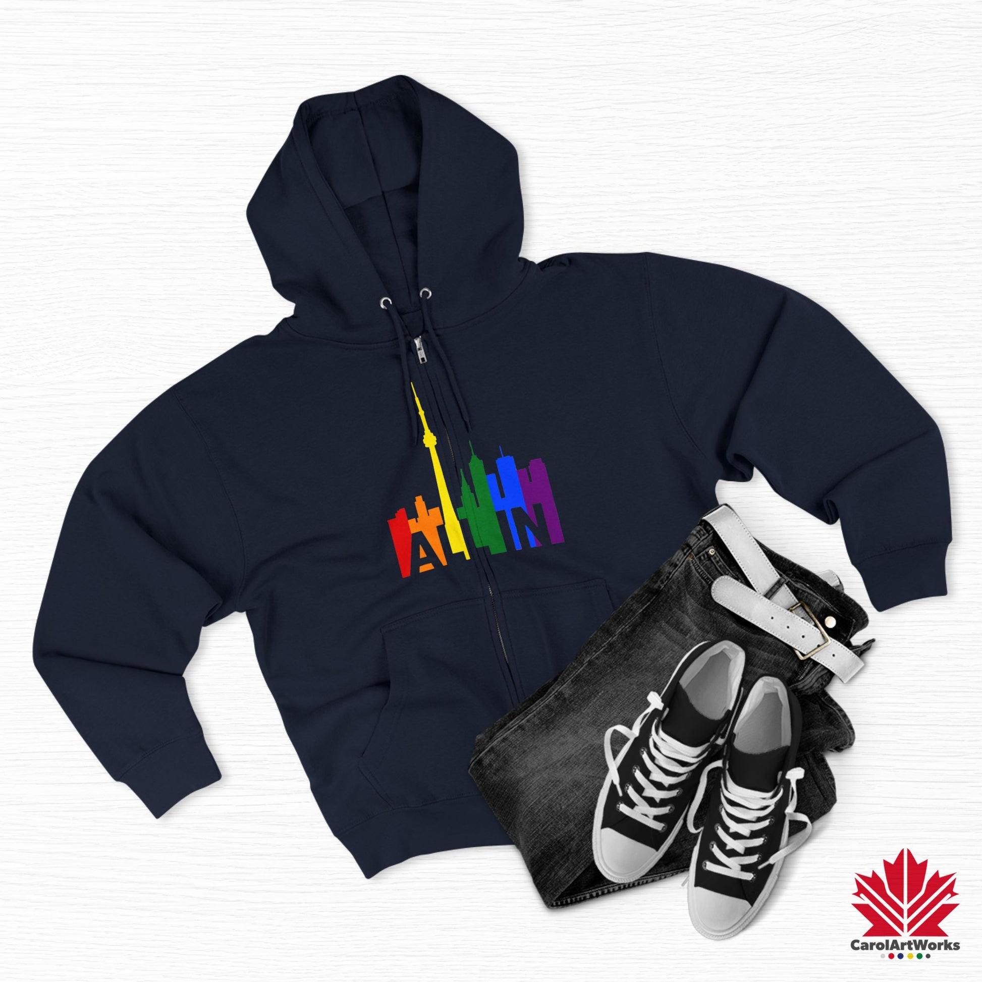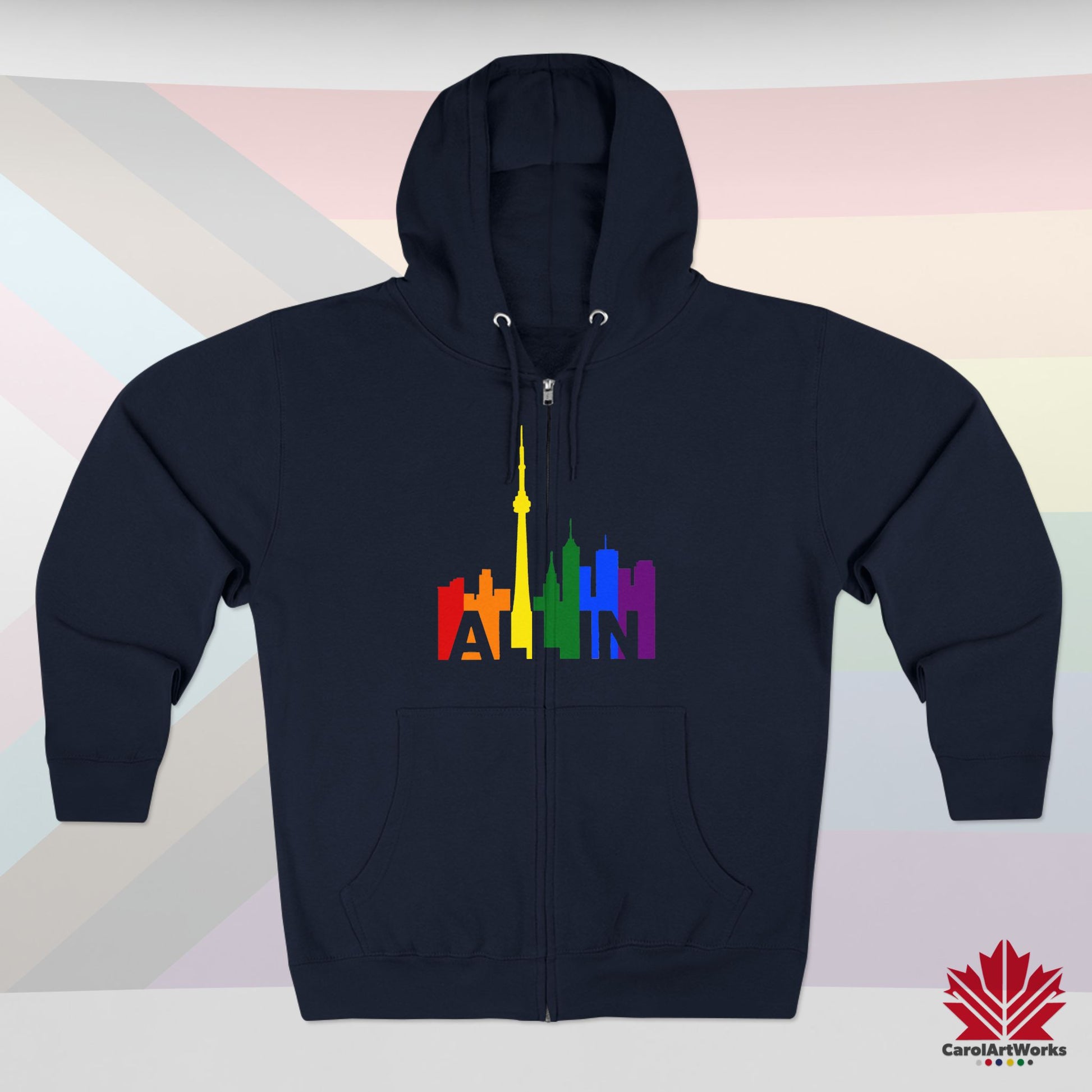 This hoodie brings the message of Pride into the colder months – with warmth, weight, and unshakable presence. Featuring the CN Tower and the vibrant Toronto skyline, the slogan “ALL IN” becomes your wearable declaration of identity and inclusion.