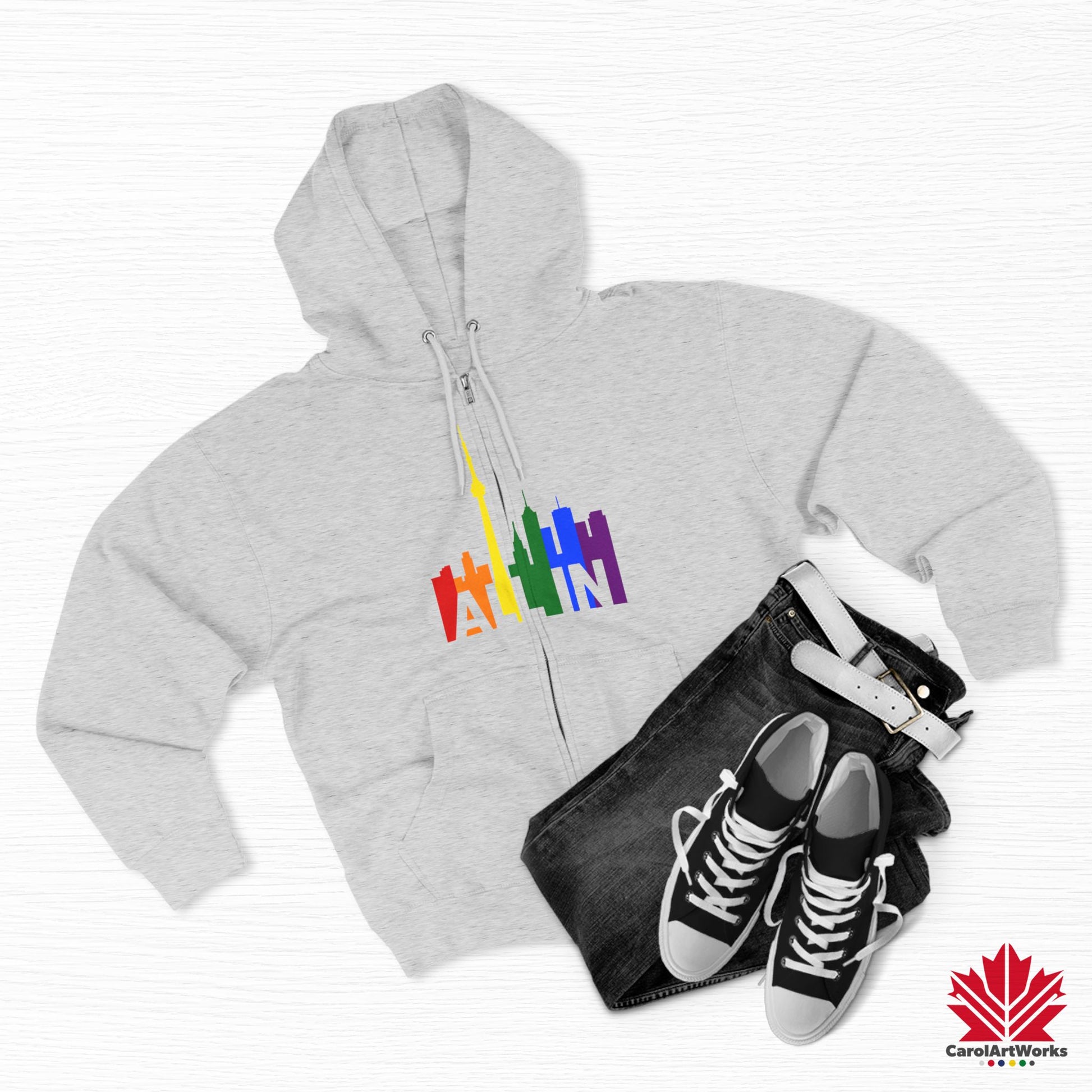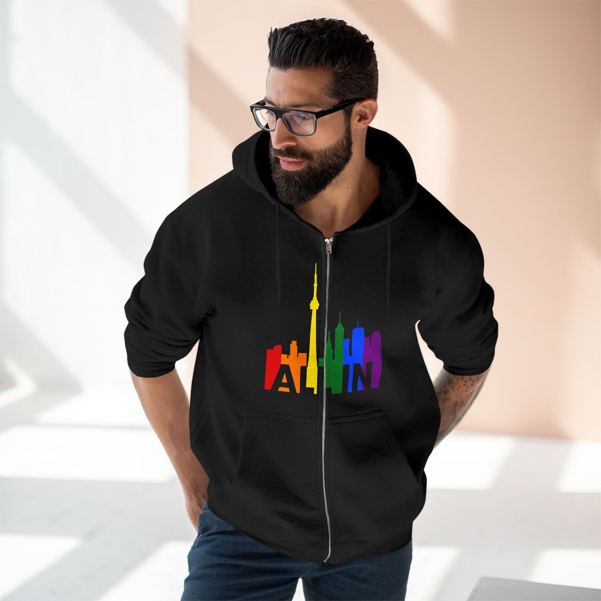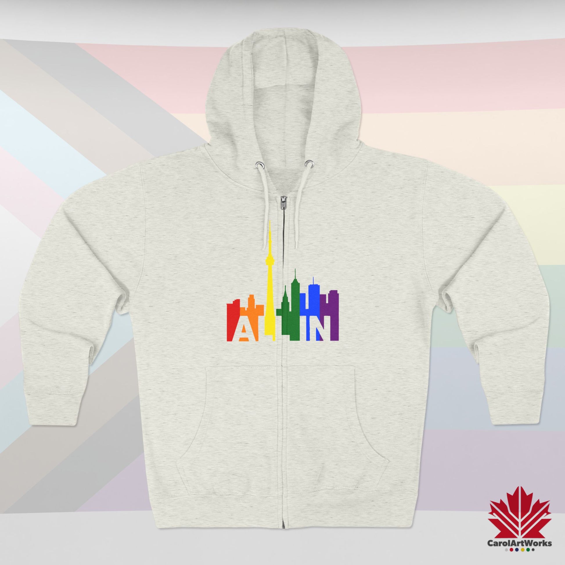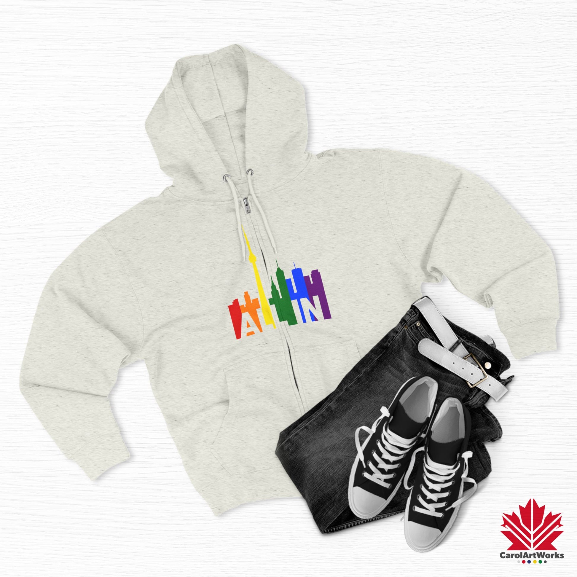 This hoodie brings the message of Pride into the colder months – with warmth, weight, and unshakable presence. Featuring the CN Tower and the vibrant Toronto skyline, the slogan “ALL IN” becomes your wearable declaration of identity and inclusion.
