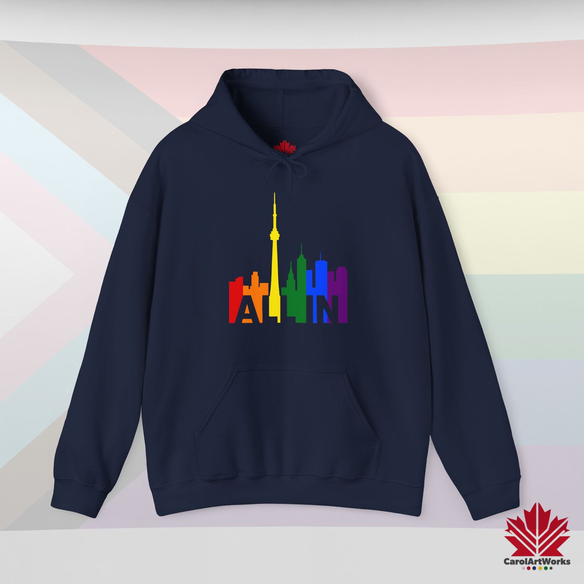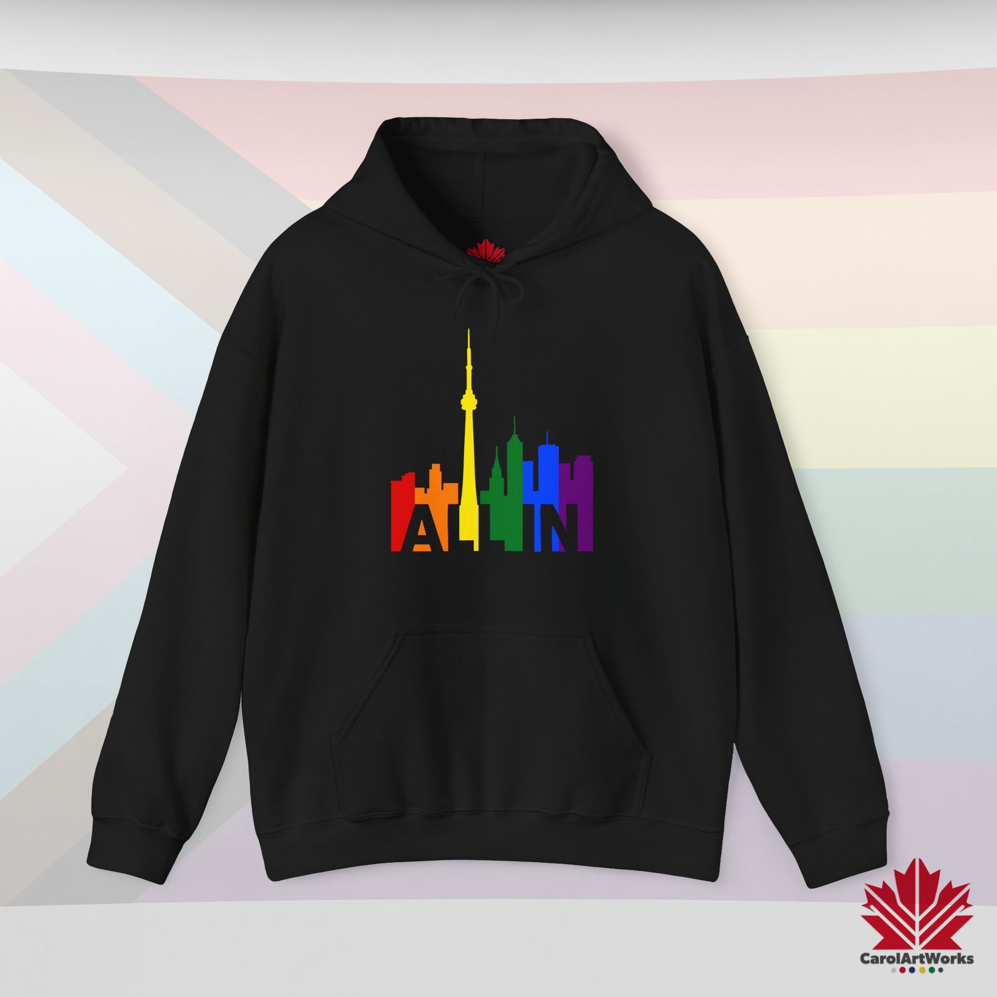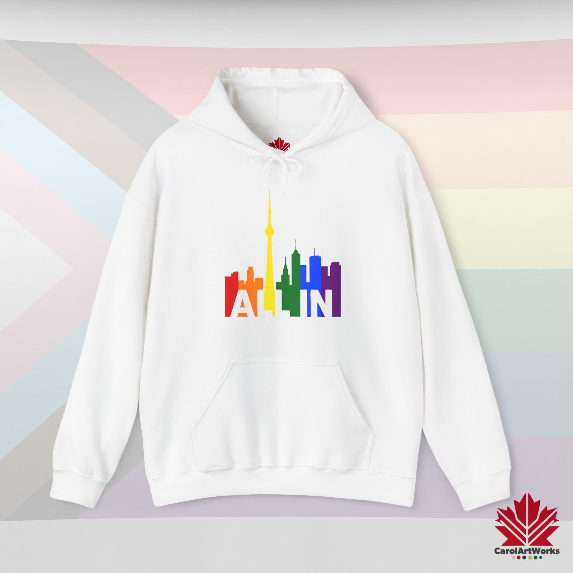 This hoodie brings the message of Pride into the colder months – with warmth, weight, and unshakable presence. Featuring the CN Tower and the vibrant Toronto skyline, the slogan “ALL IN” becomes your wearable declaration of identity and inclusion.
