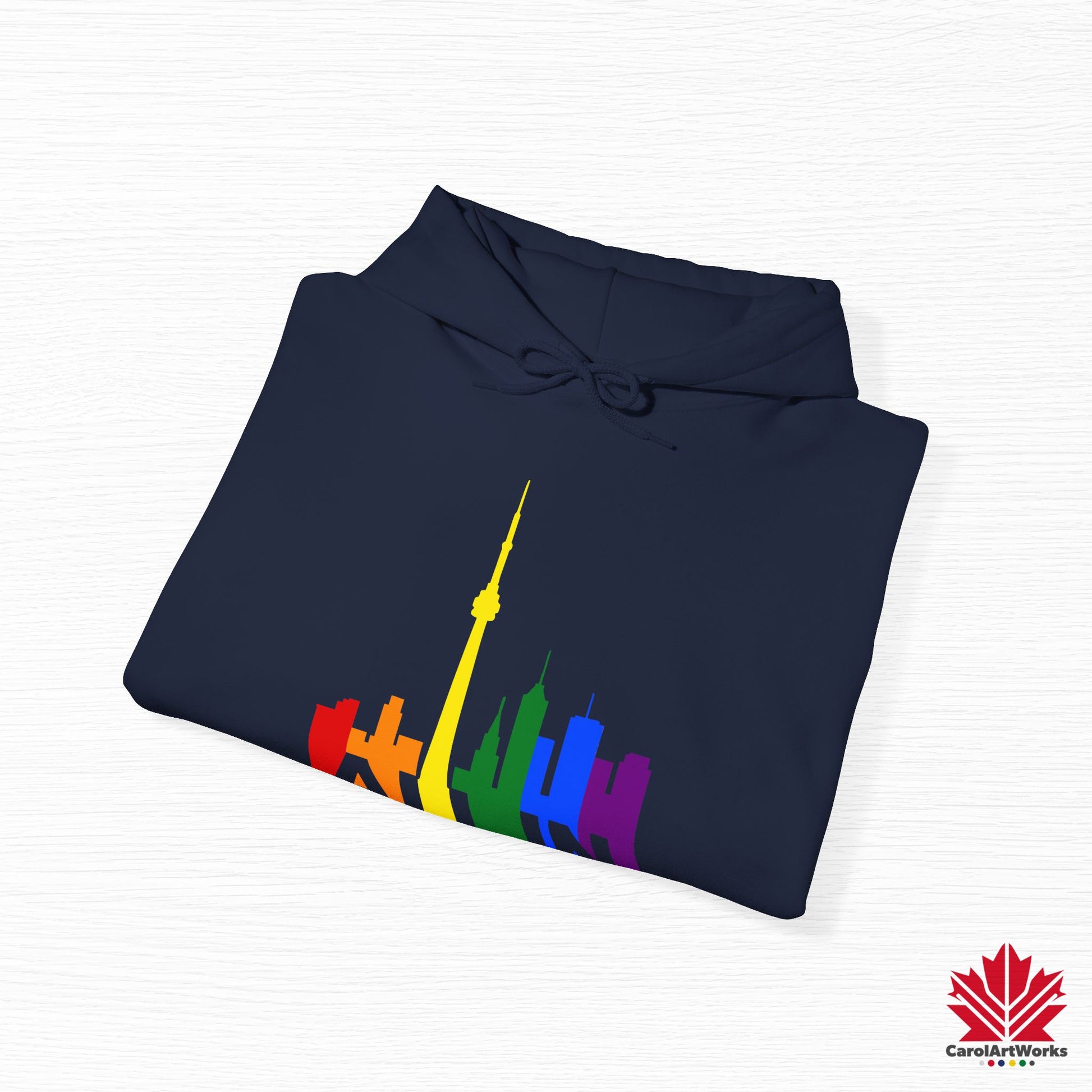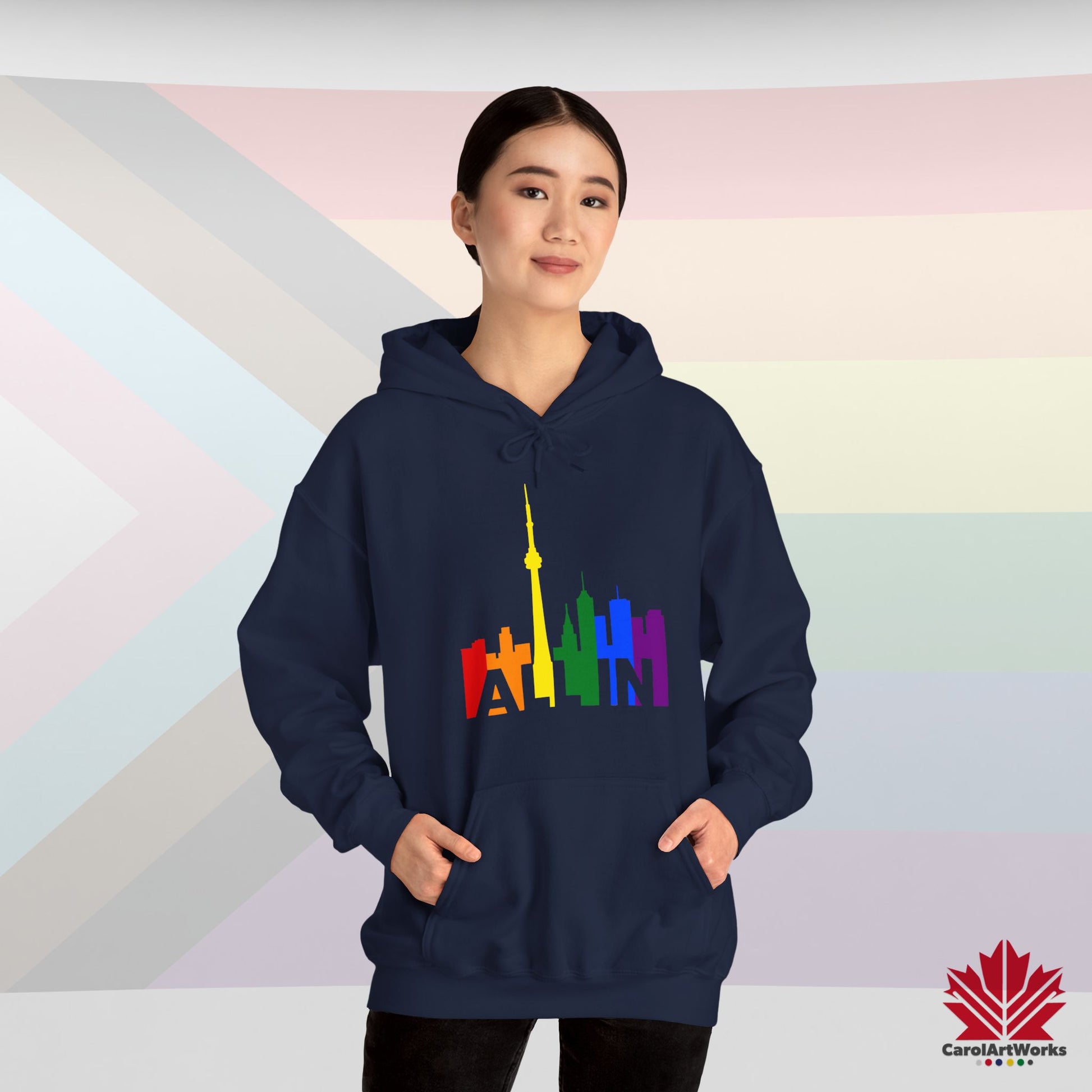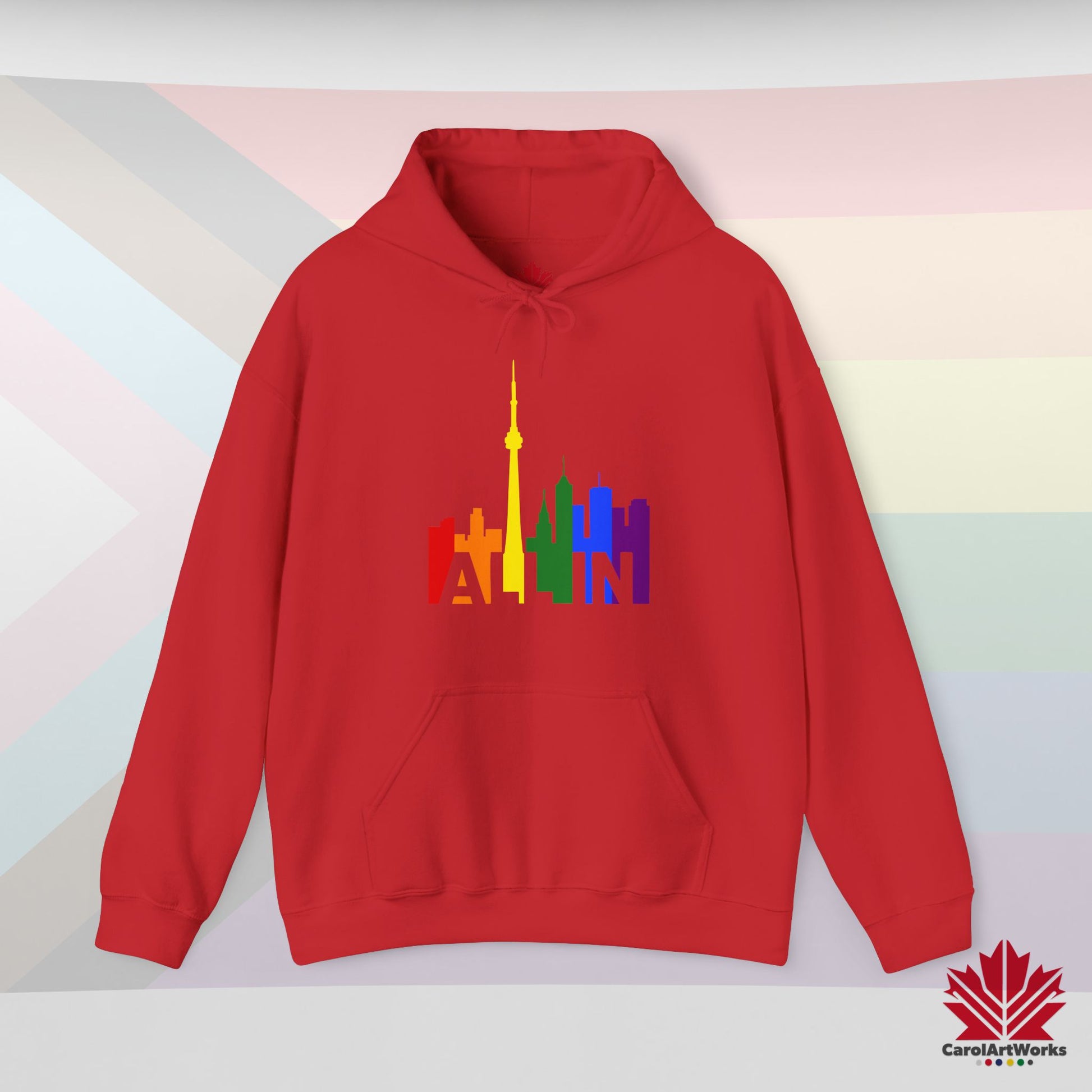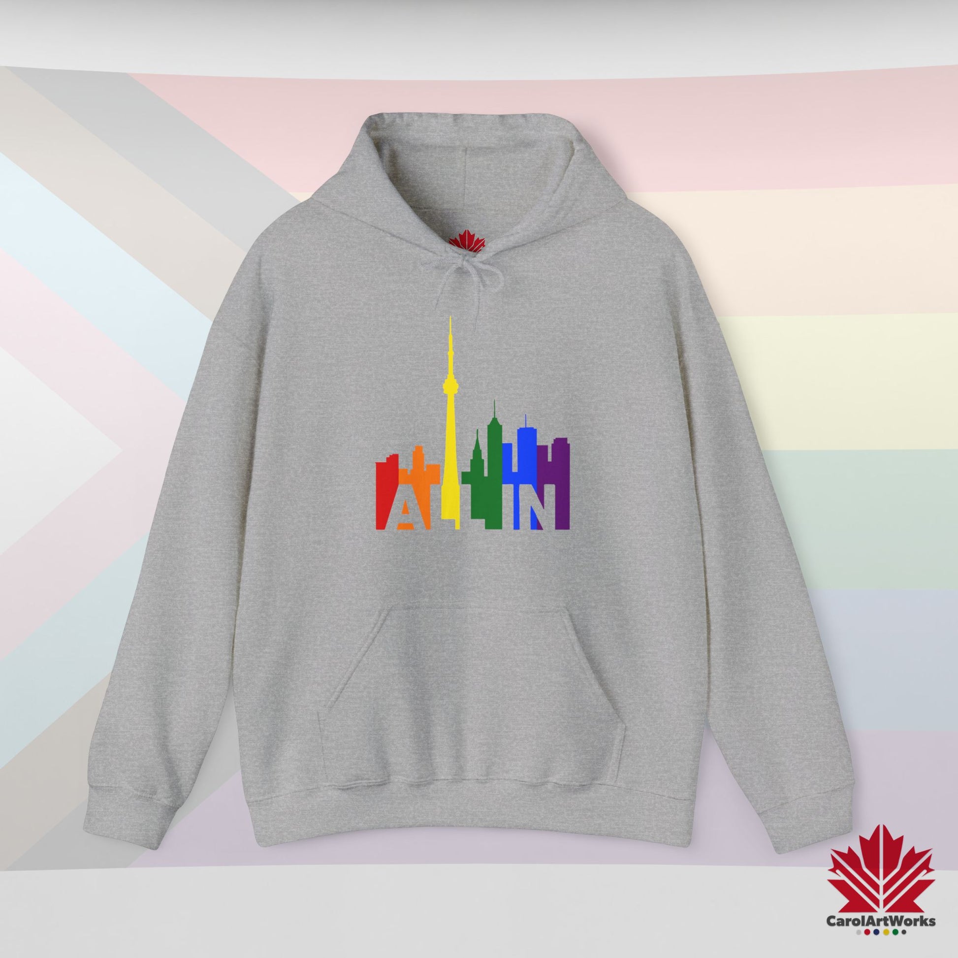 This hoodie brings the message of Pride into the colder months – with warmth, weight, and unshakable presence. Featuring the CN Tower and the vibrant Toronto skyline, the slogan “ALL IN” becomes your wearable declaration of identity and inclusion.