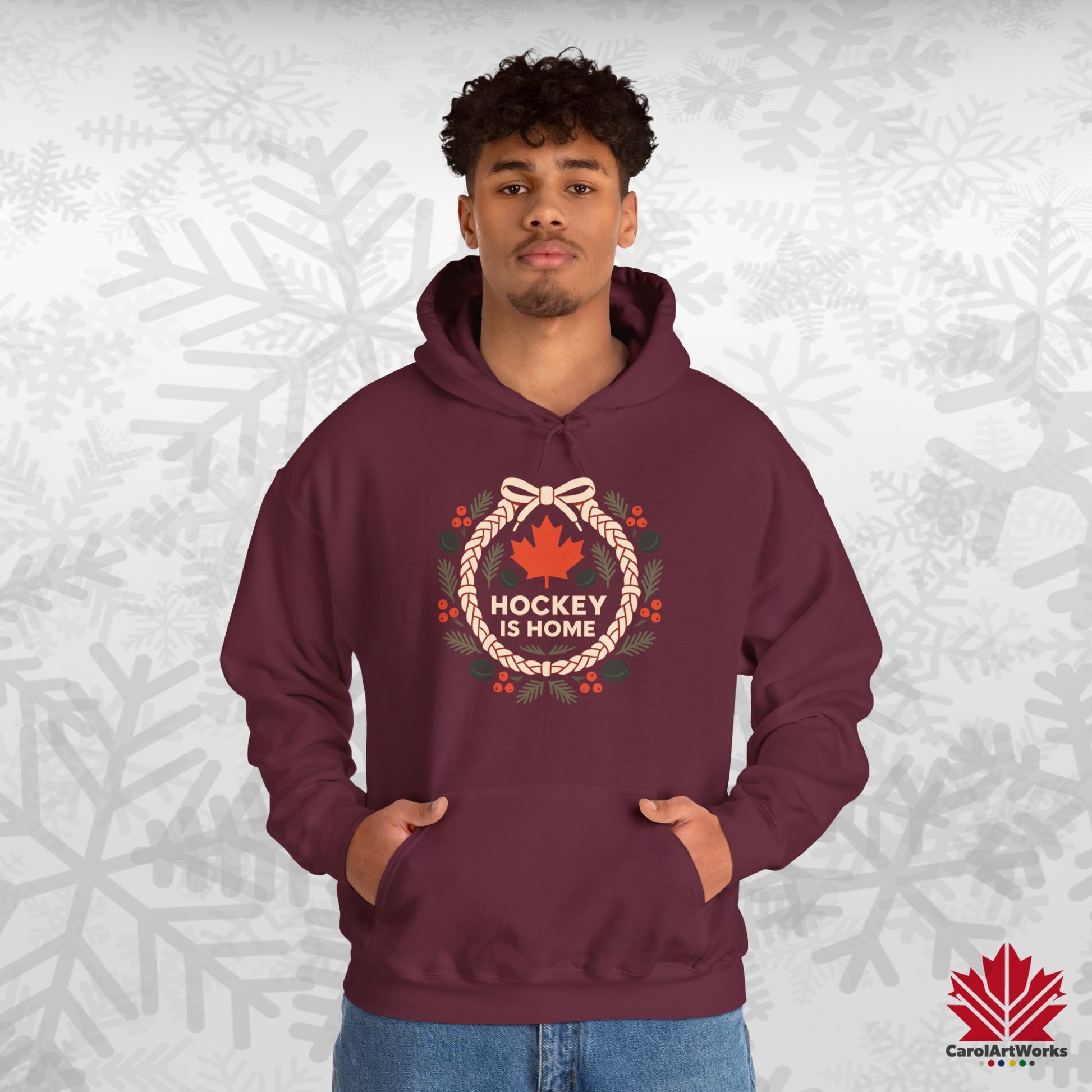 Hockey Lace Wreath Hoodie | Canadian Hockey Christmas Hoodie | Premium Fleece, Free Shipping