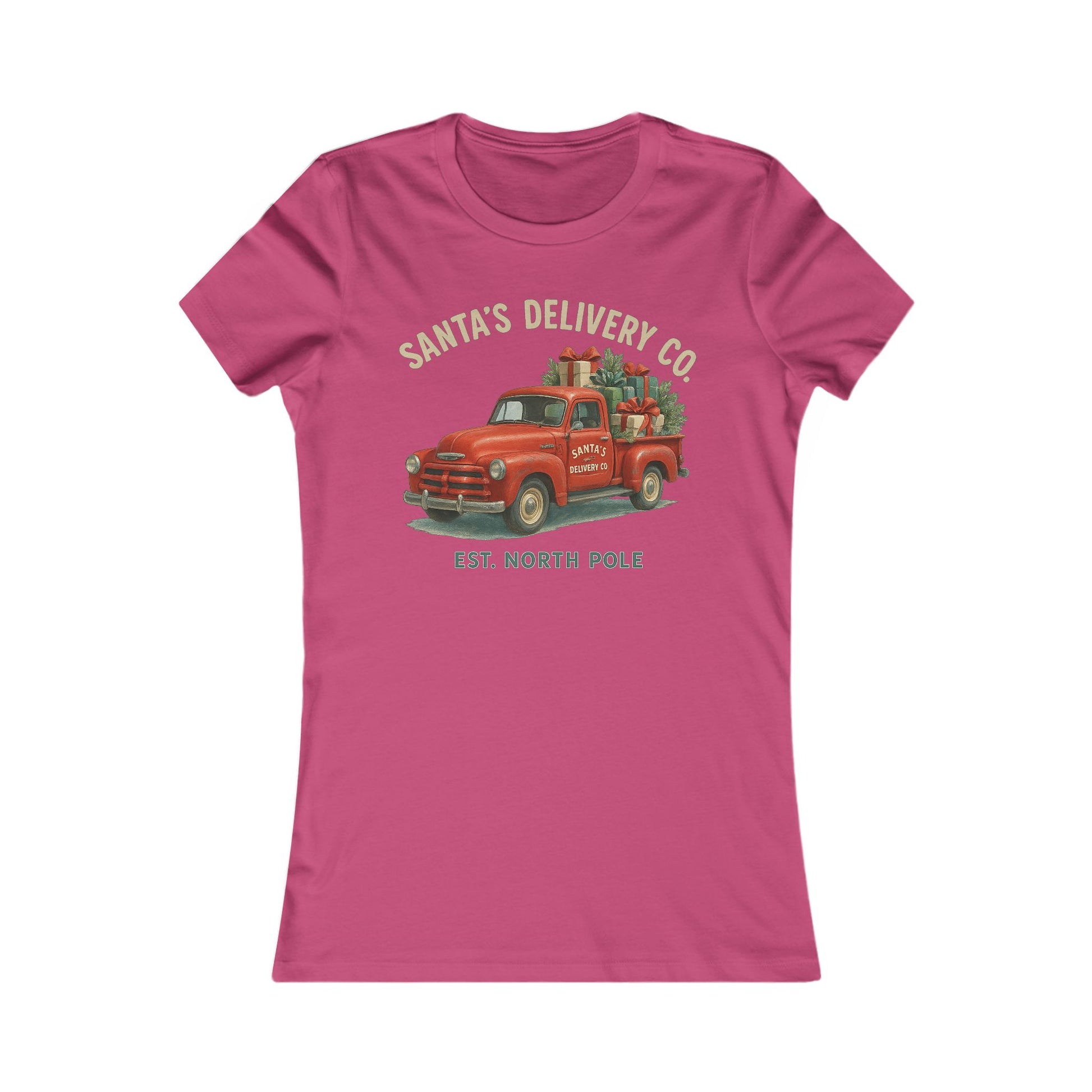 Santa’s Delivery Truck Women’s Tee | Vintage Holiday Shirt | Canadian Cotton Blend, Red Truck Design