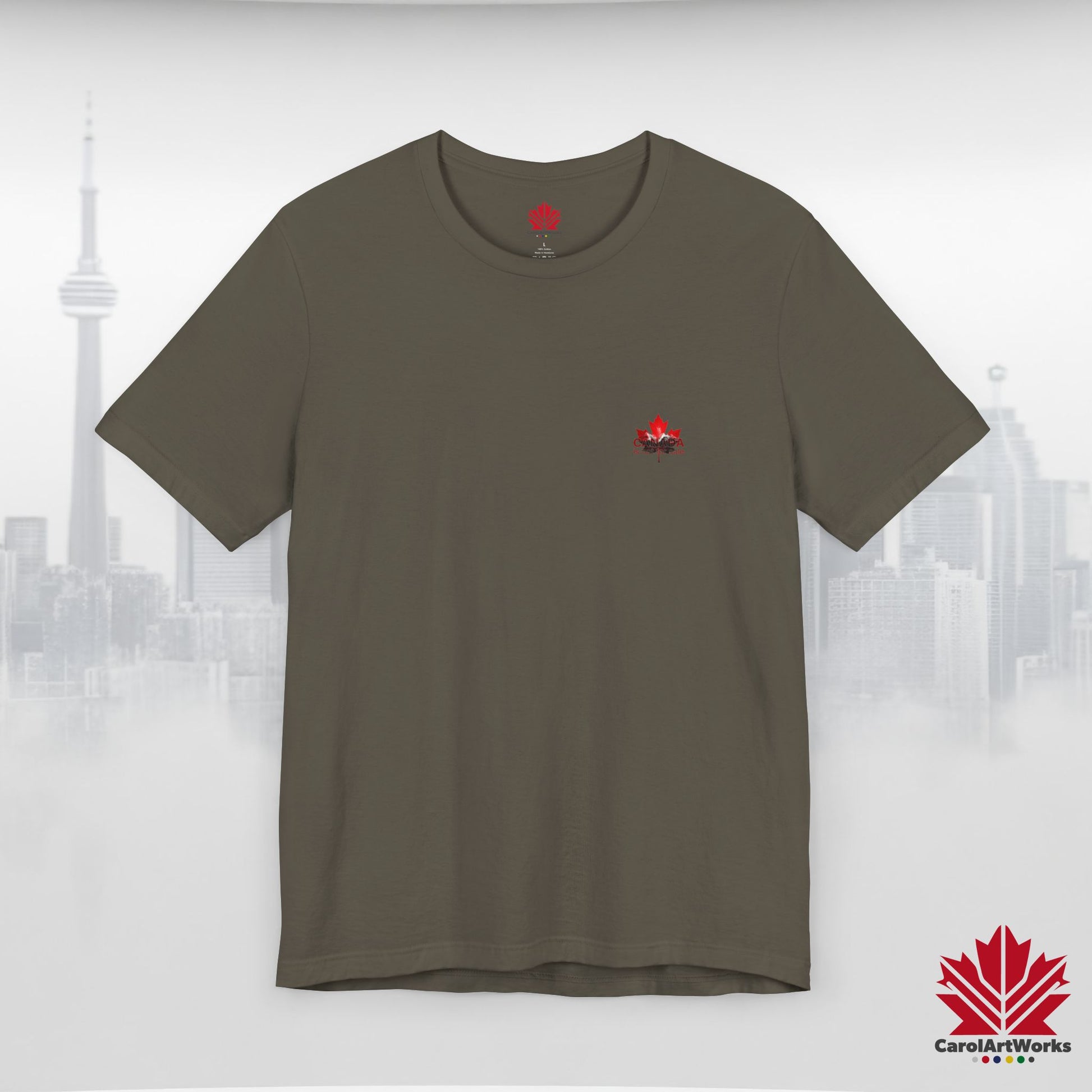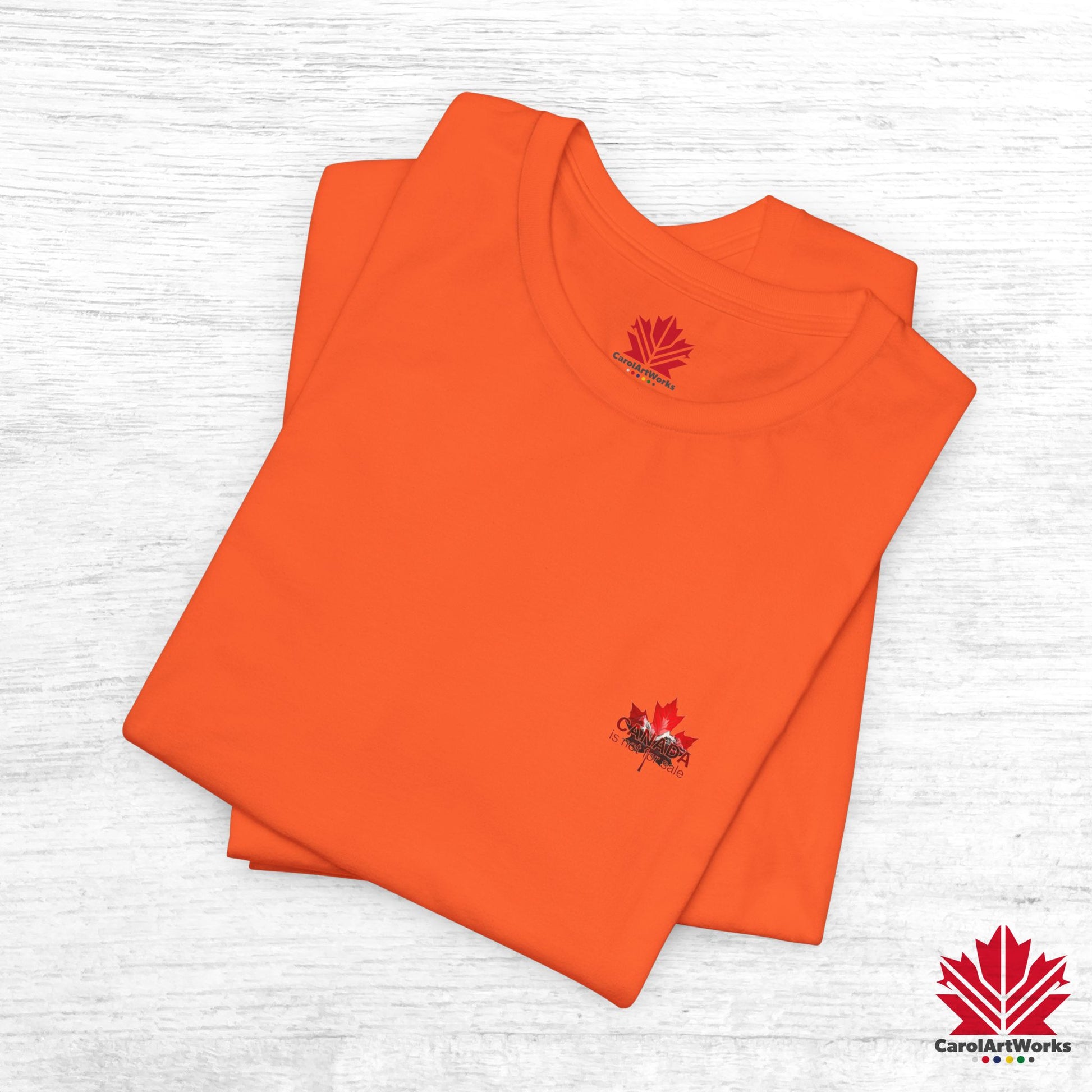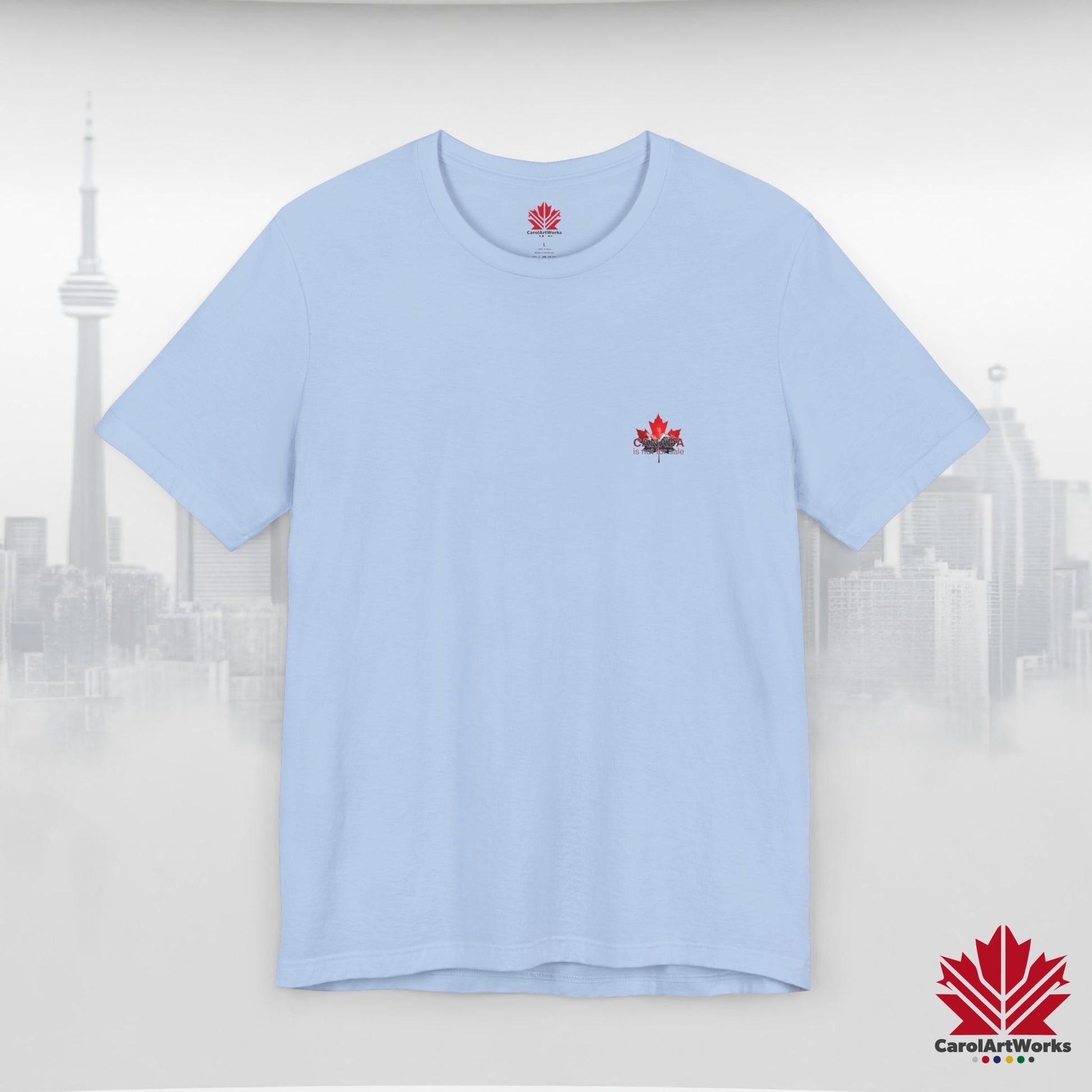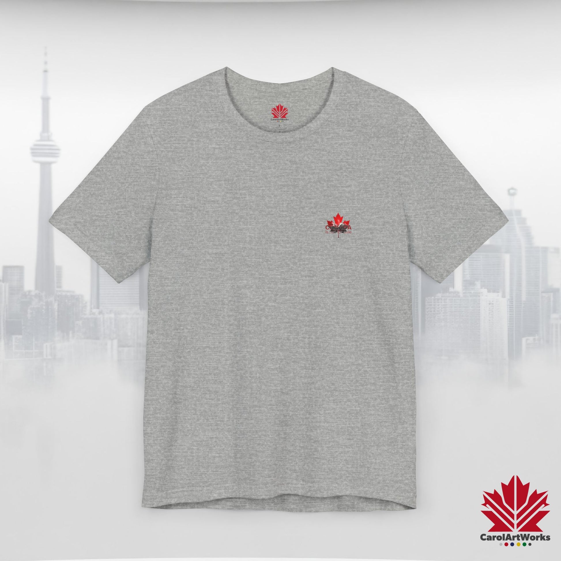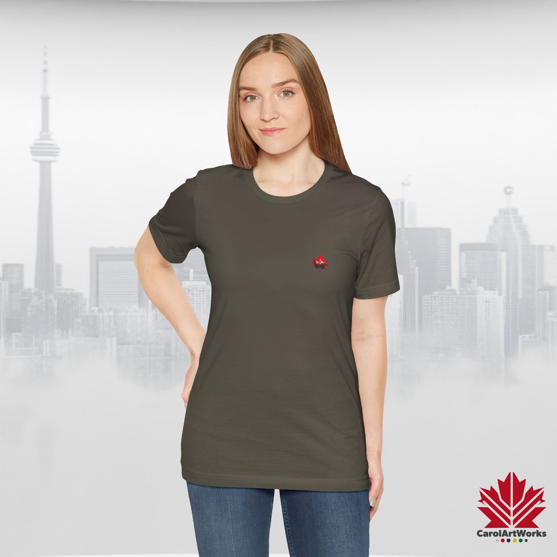 “Canada is not for Sale” Unisex Short Sleeve Tee – Red Maple Leaf and Mountains, Stylish Canada Shirt