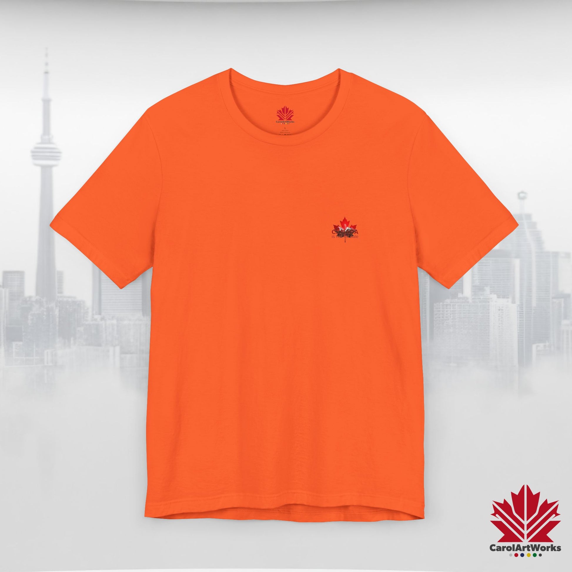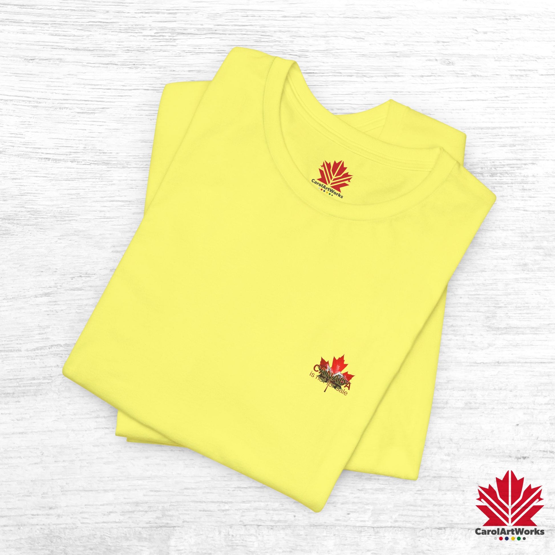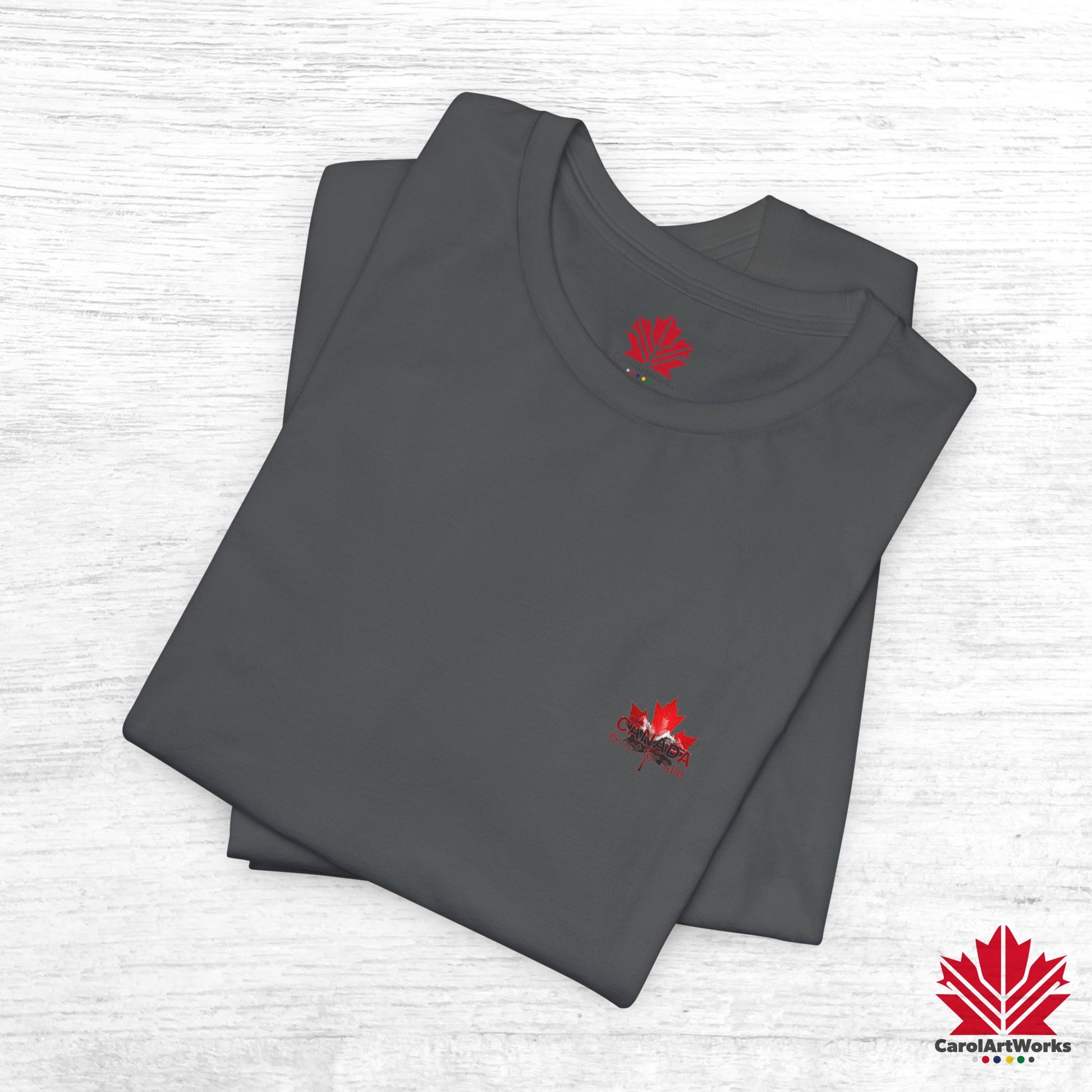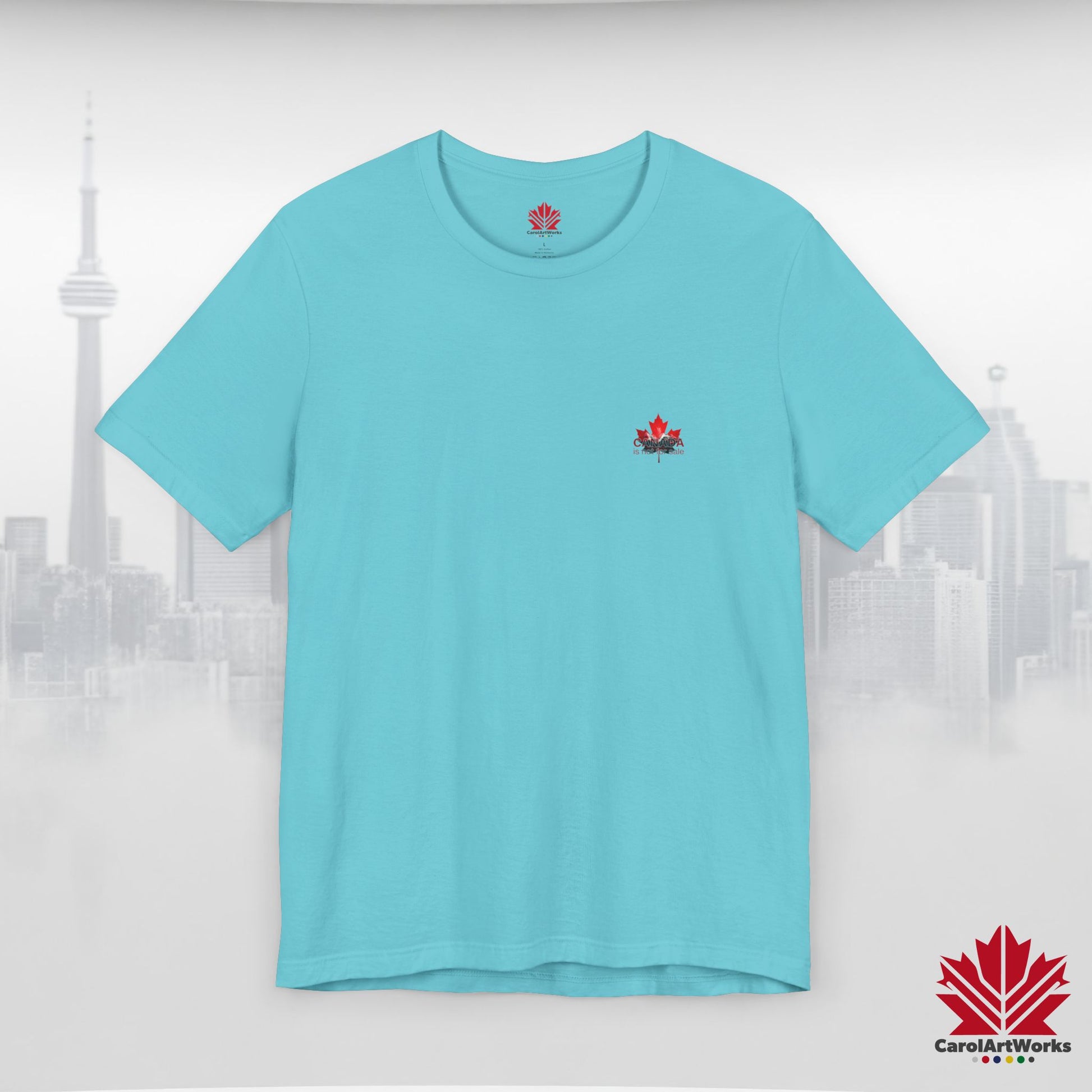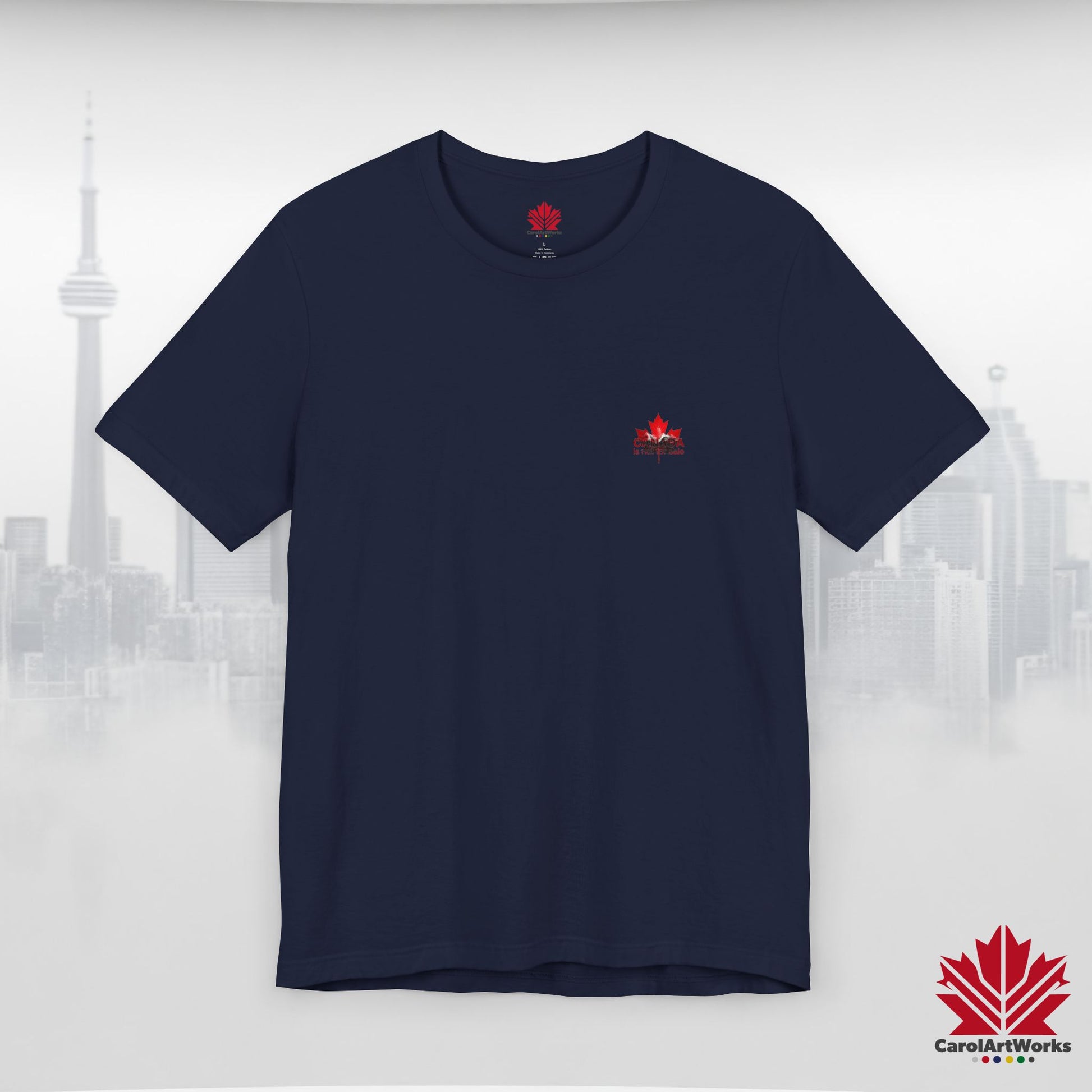 “Canada is not for Sale” Unisex Short Sleeve Tee – Red Maple Leaf and Mountains, Stylish Canada Shirt