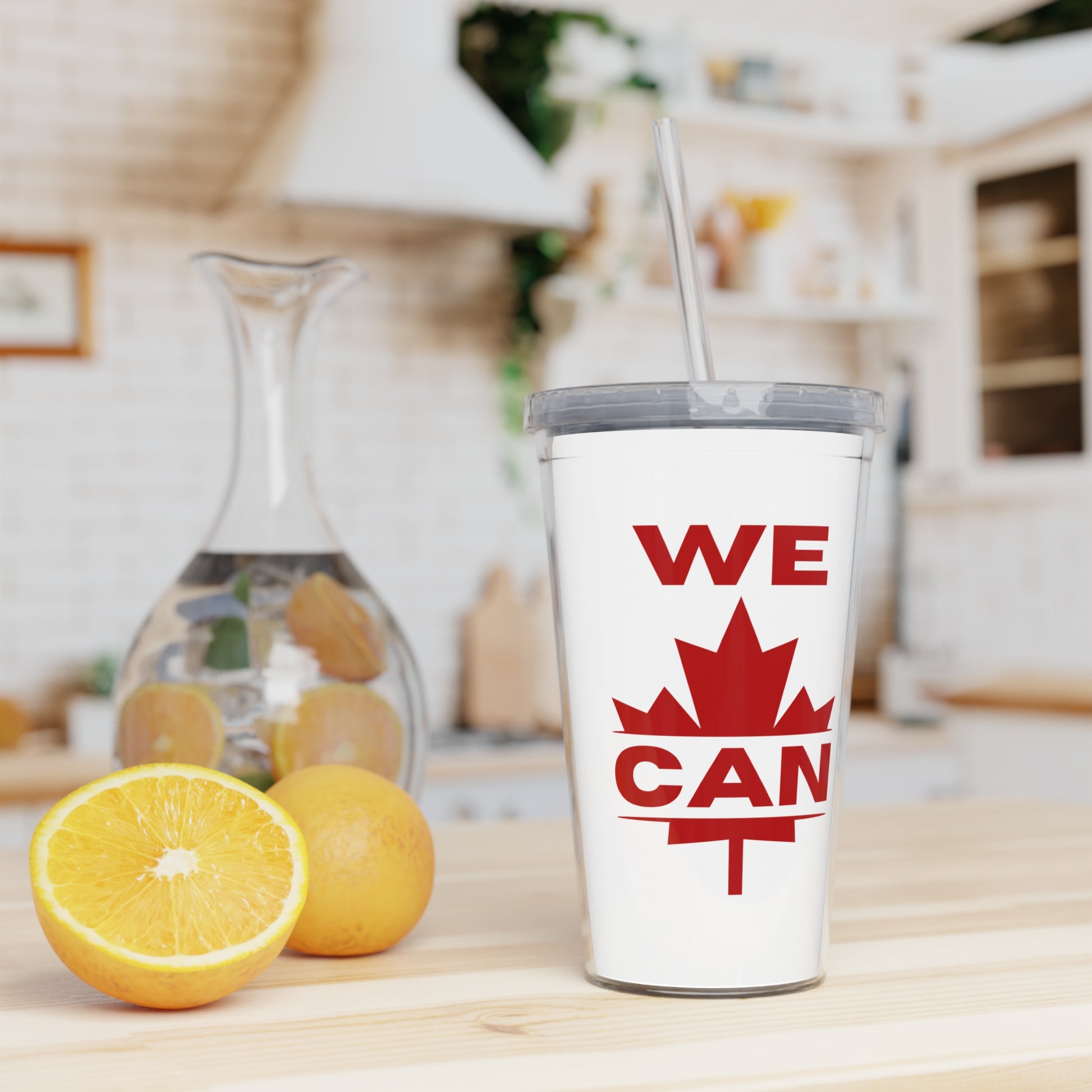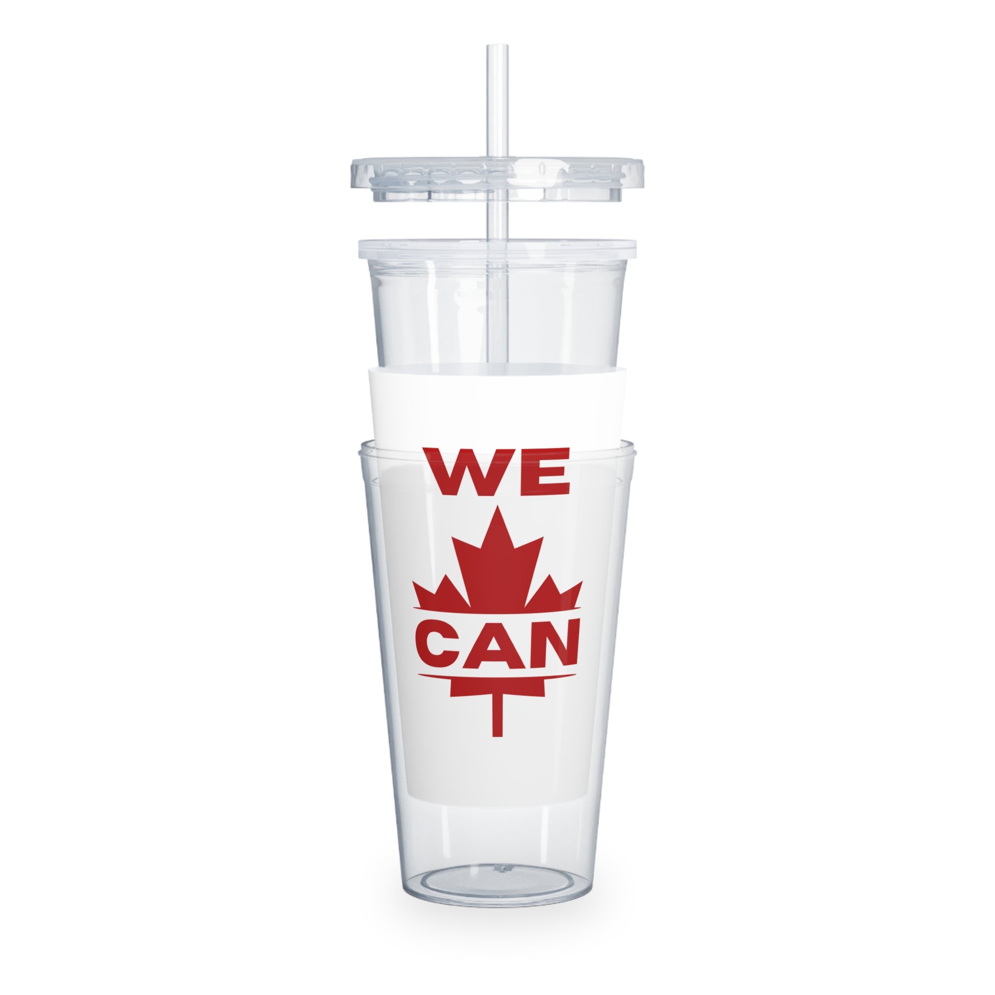 Canada Pride Plastic Tumbler with Straw - "WE CAN" Design
