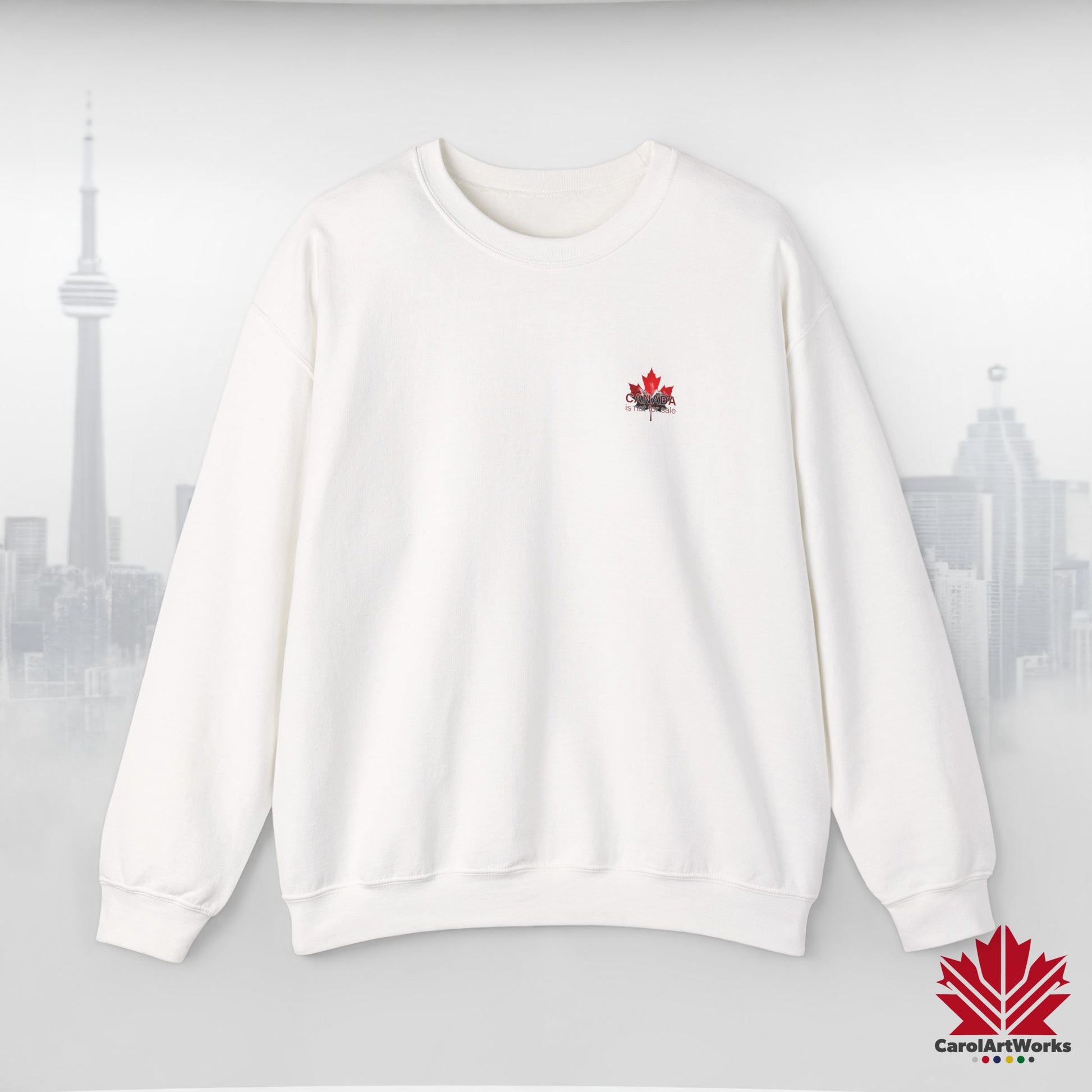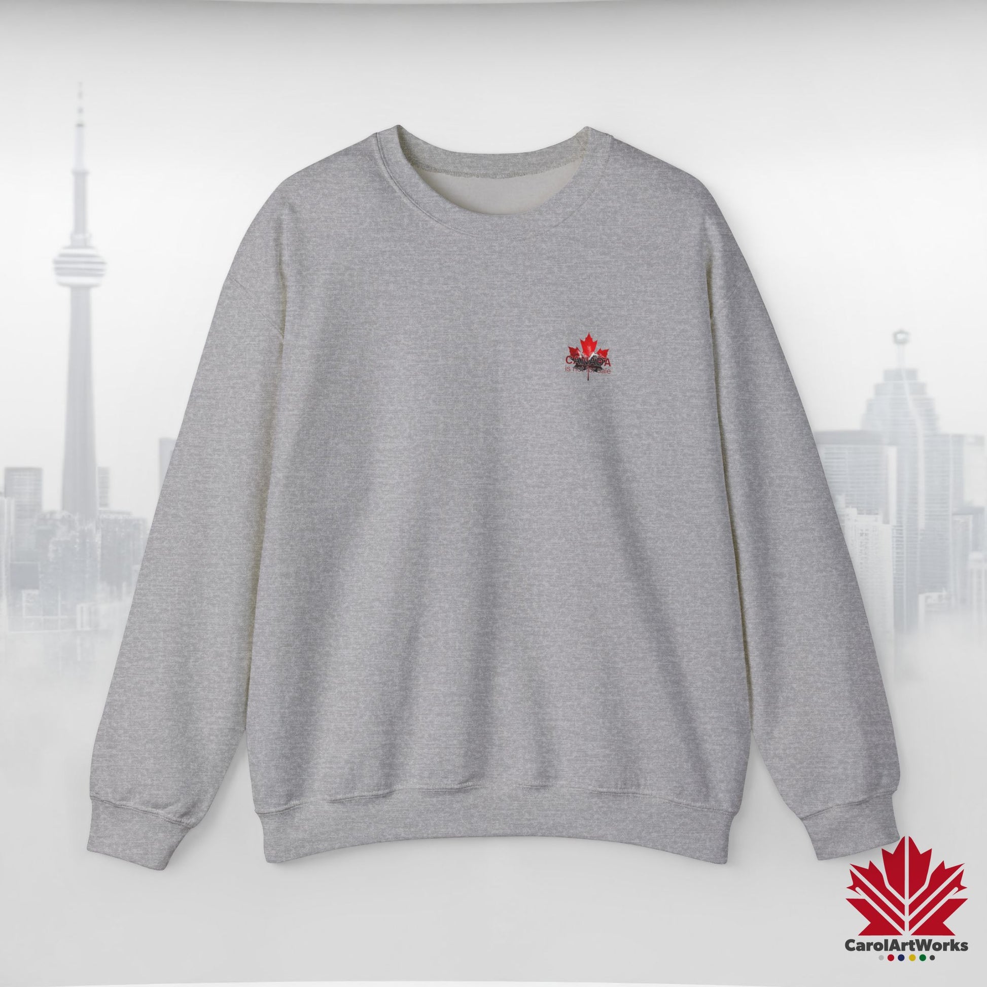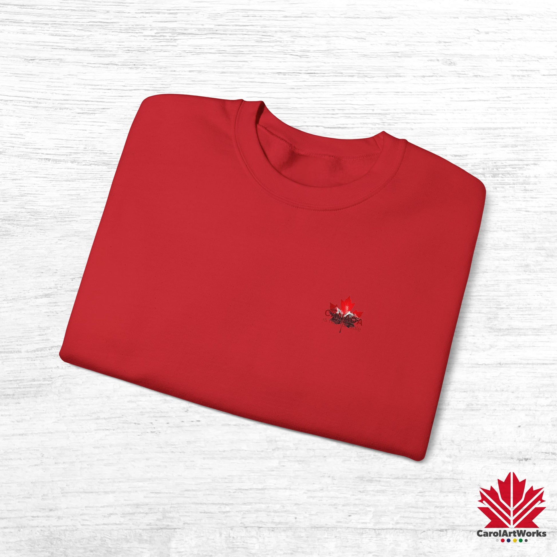 “Canada is Not for Sale” Crewneck Sweatshirt - Red Maple Leaf and Mountains, Soft and Warm