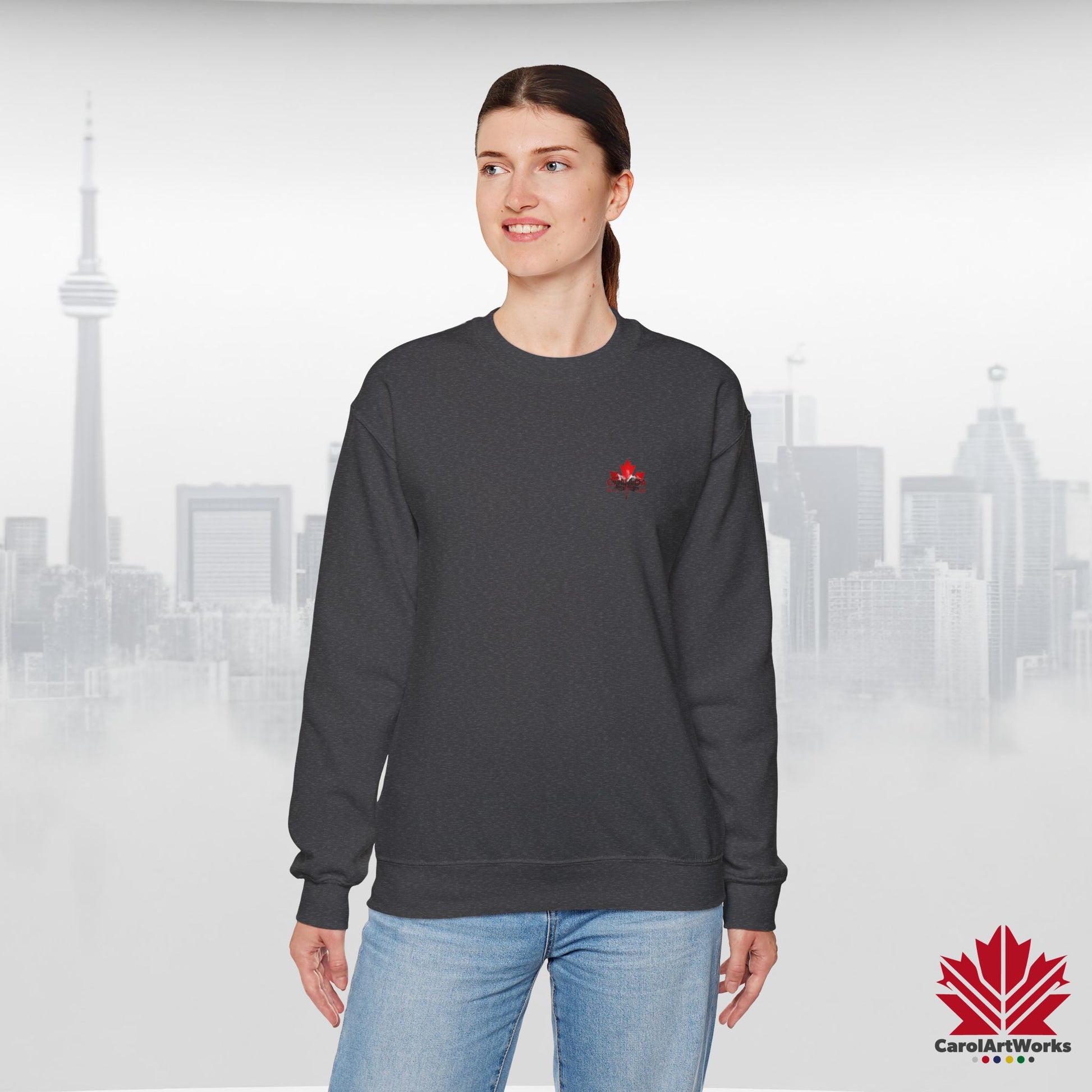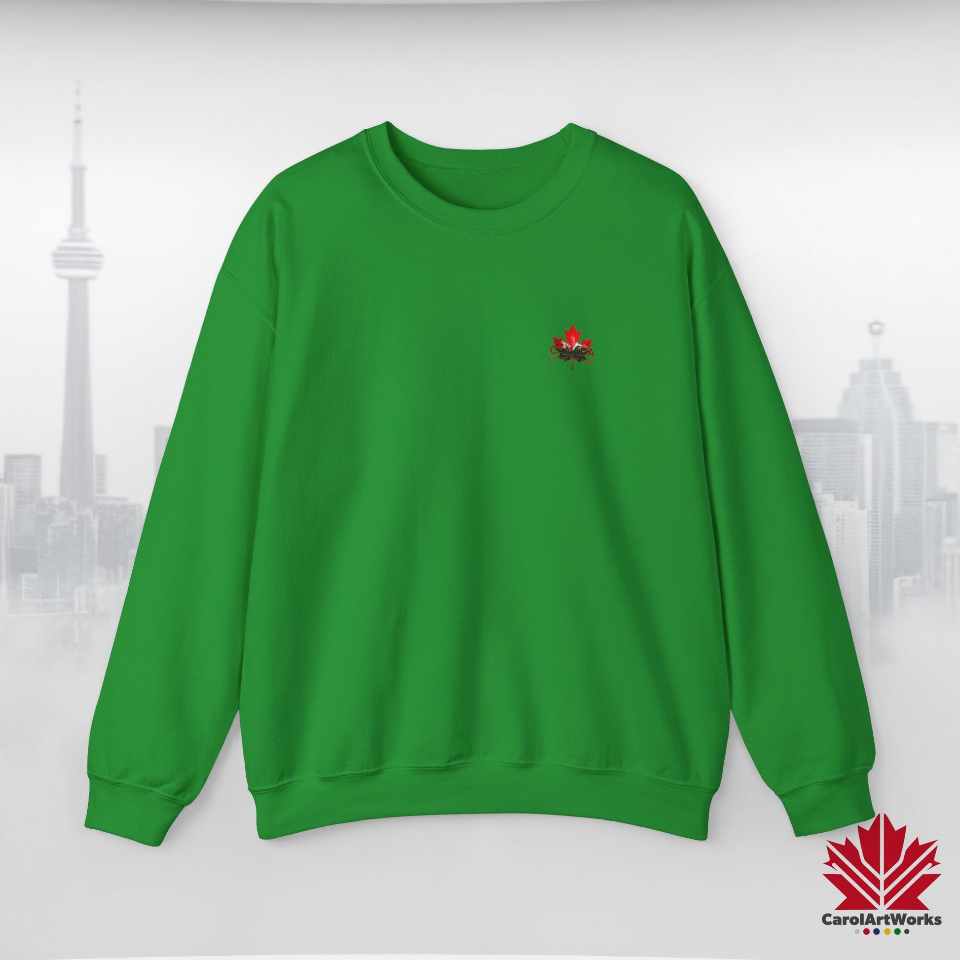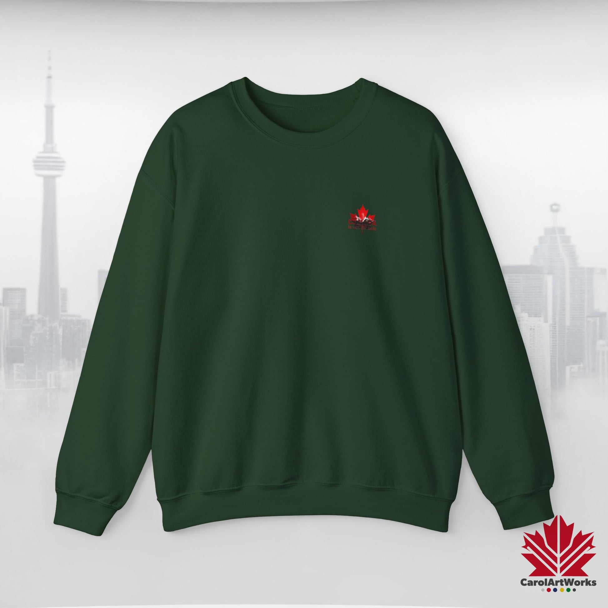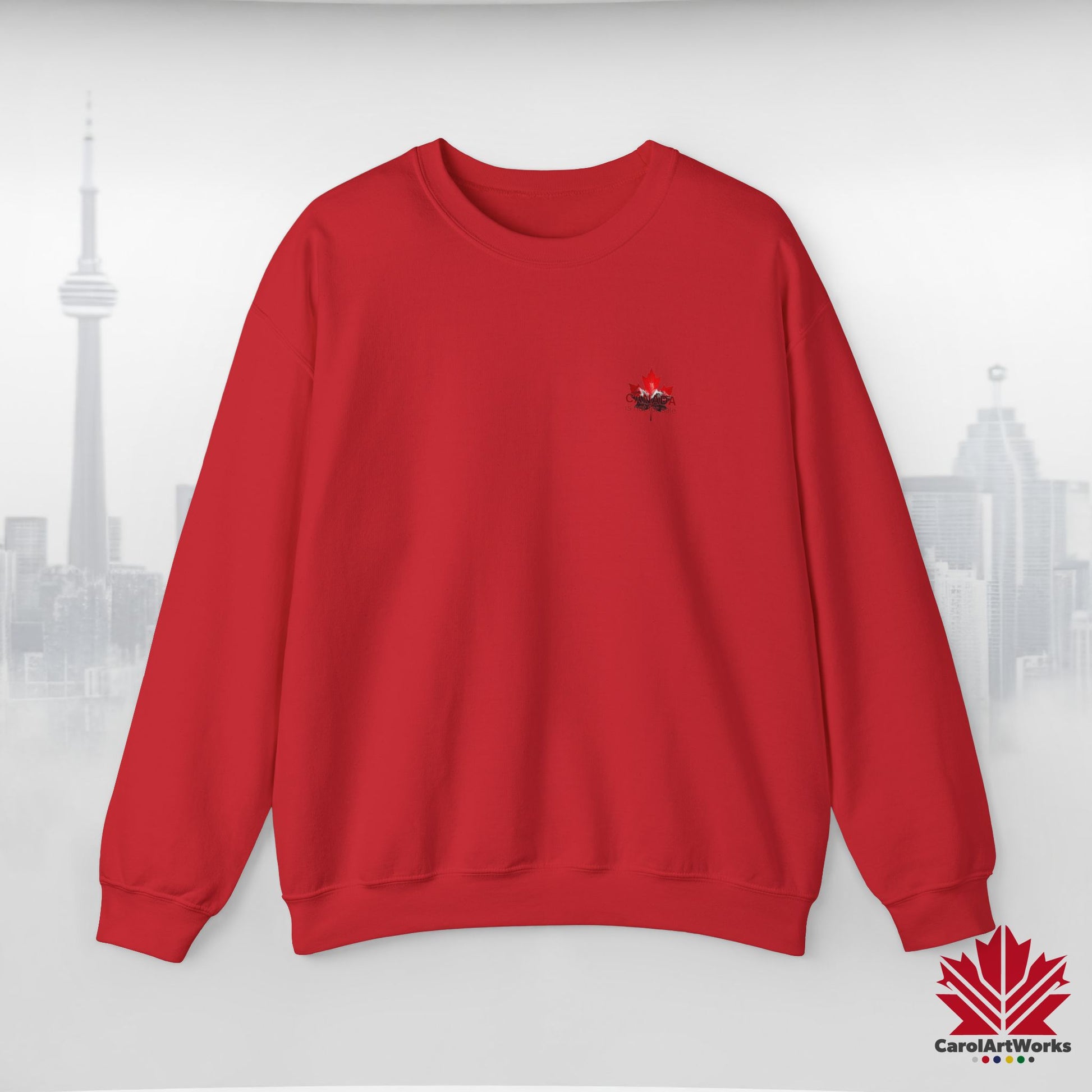“Canada is Not for Sale” Crewneck Sweatshirt - Red Maple Leaf and Mountains, Soft and Warm