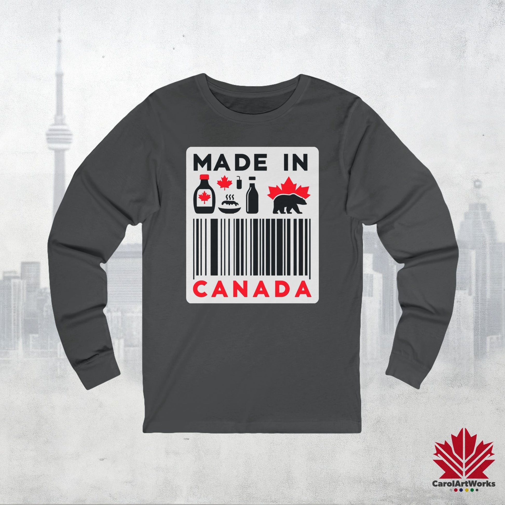 “Made in Canada” Unisex Long Sleeve Tee – Minimalist, Playful, and Proud