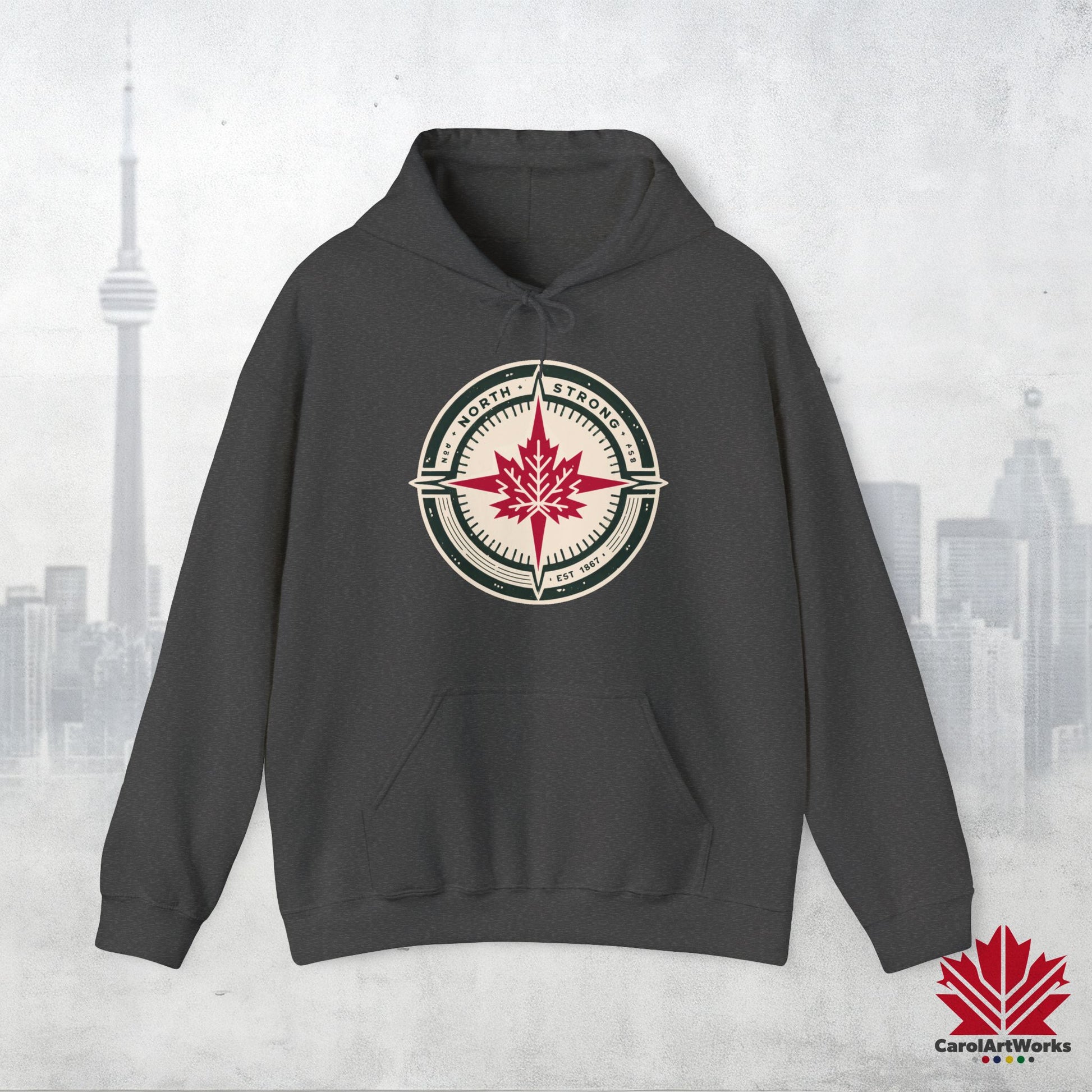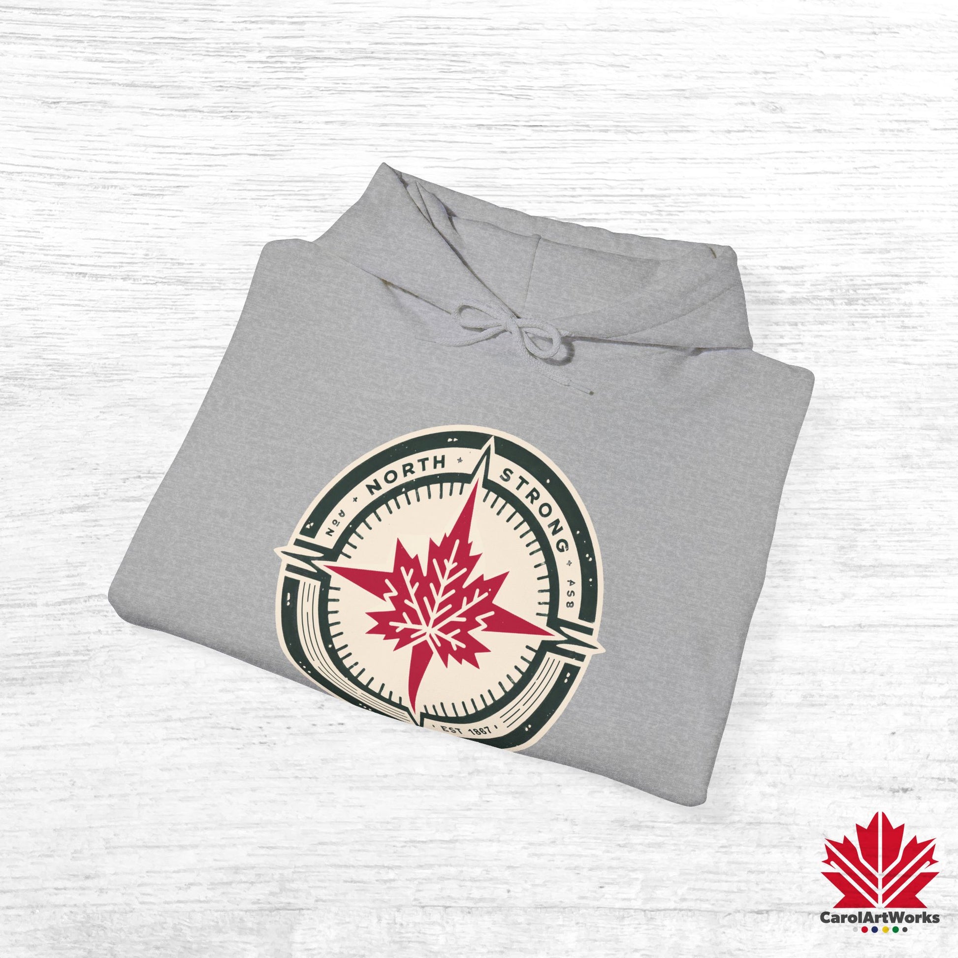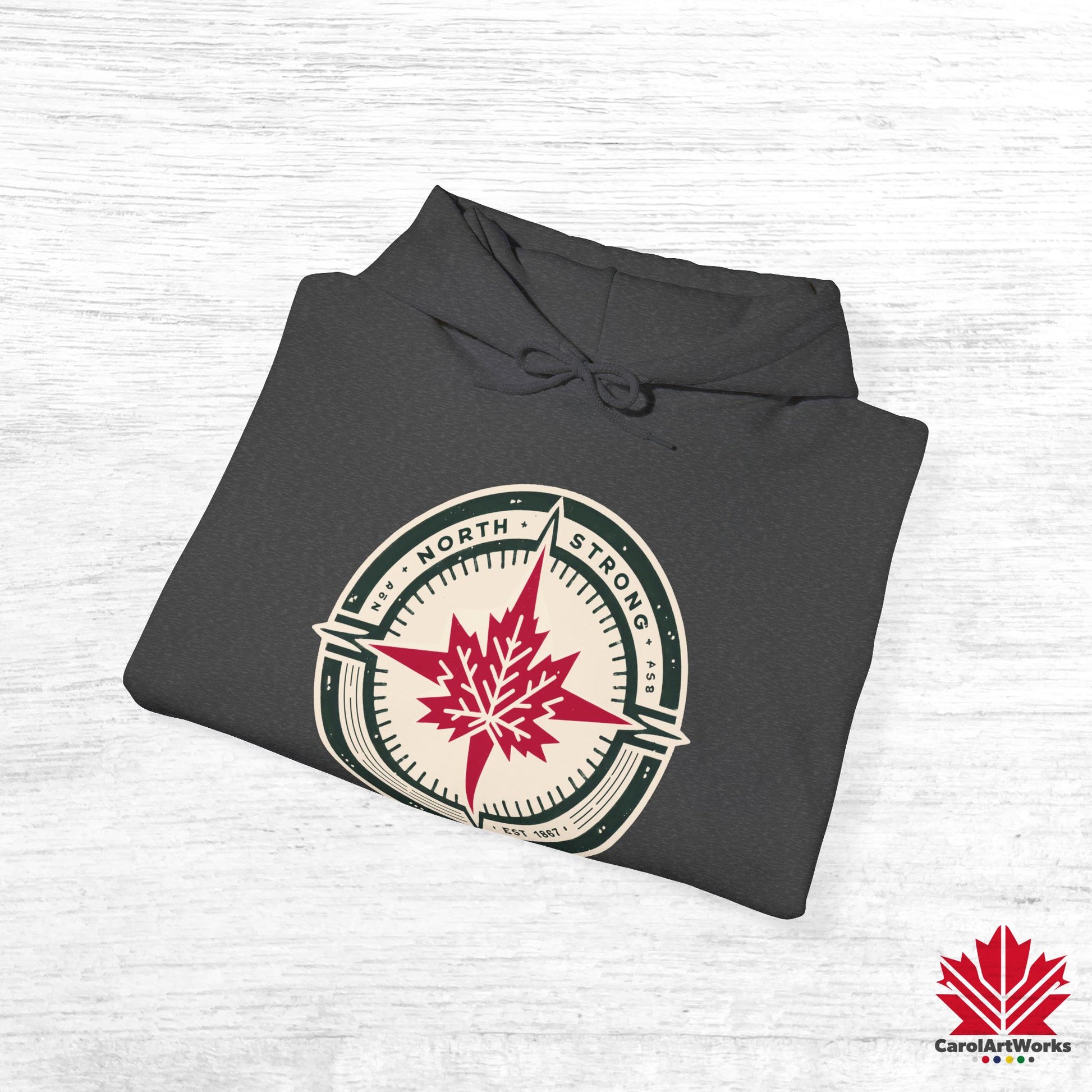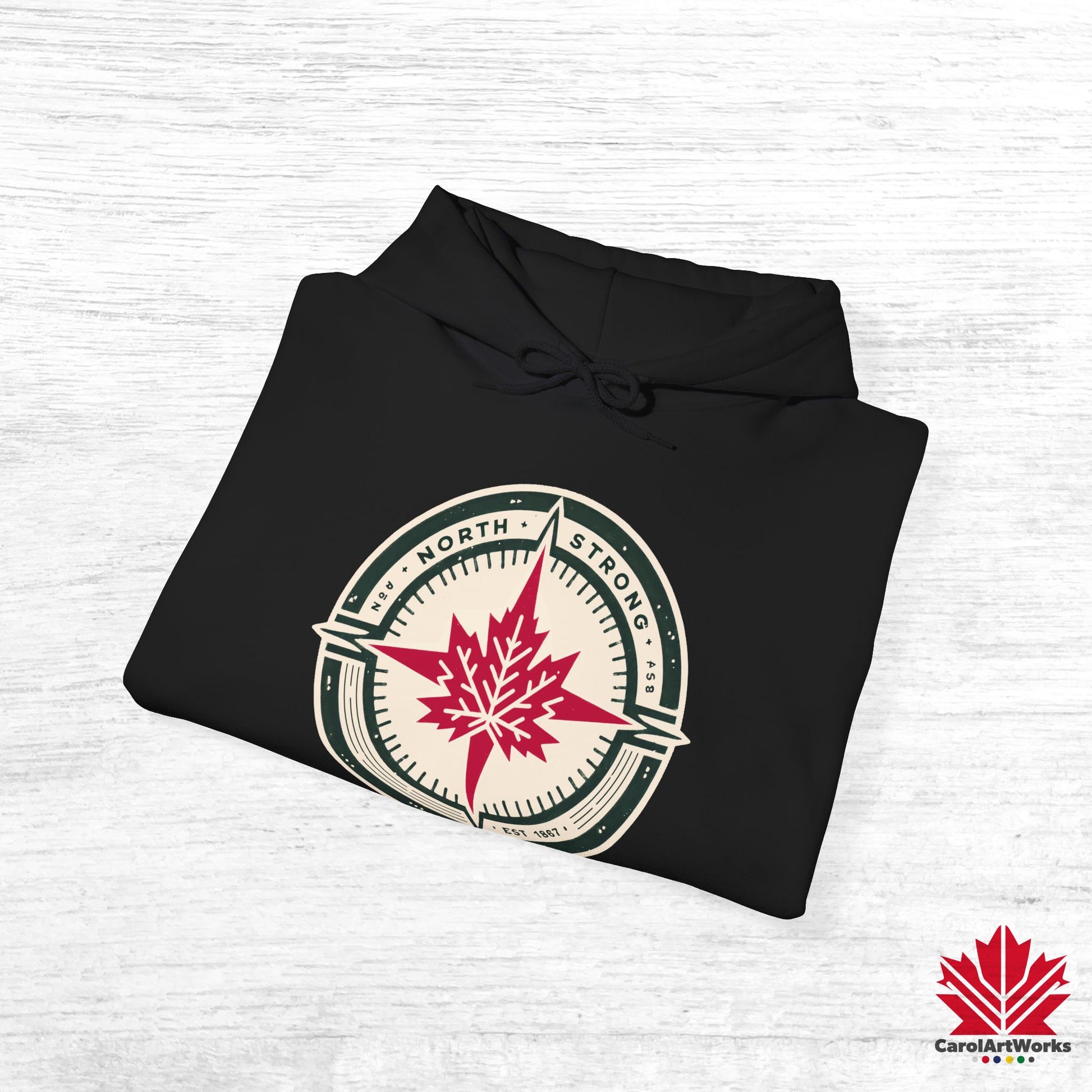 “North Strong” Compass Design Unisex Hoodie – Navigate Adventure with Canadian Pride