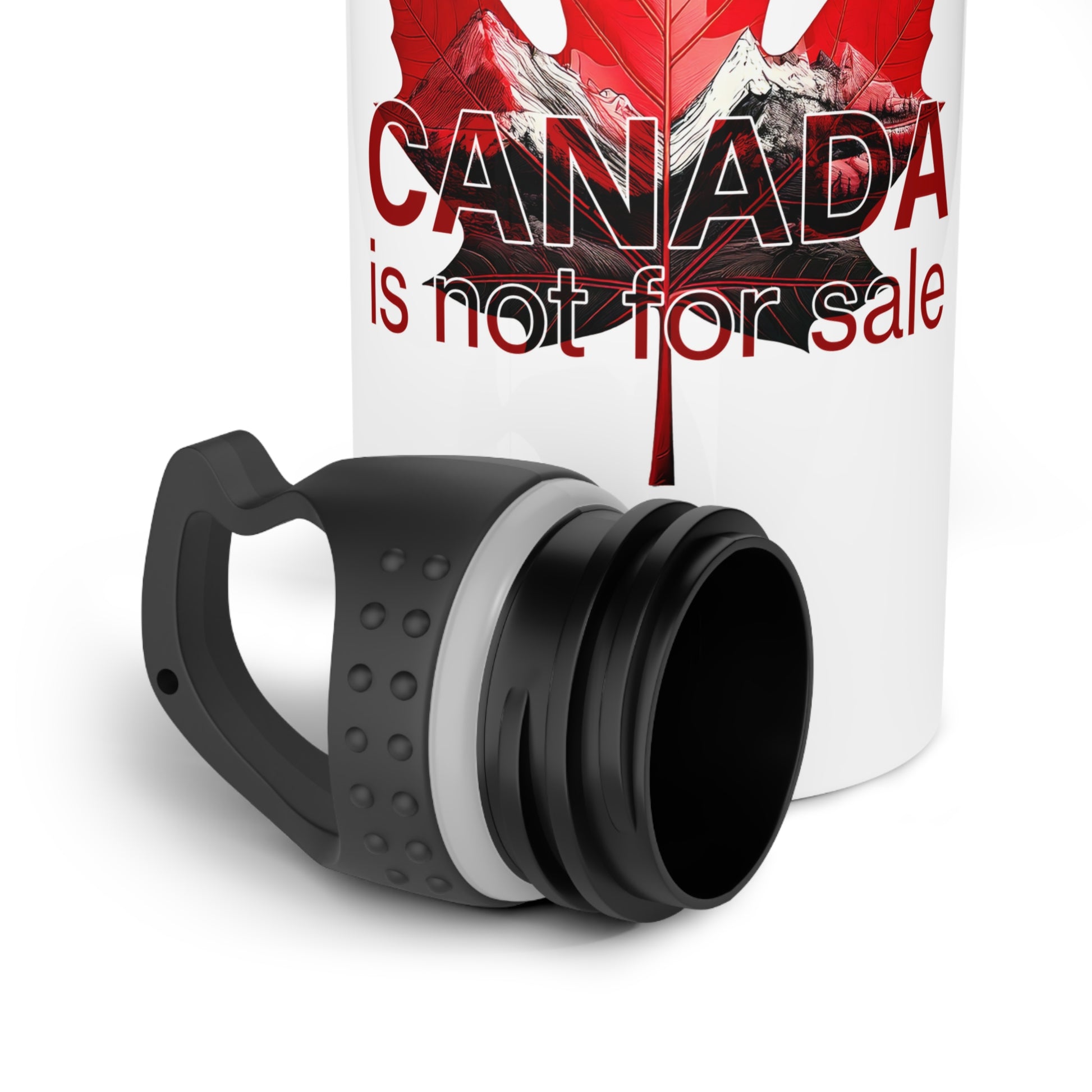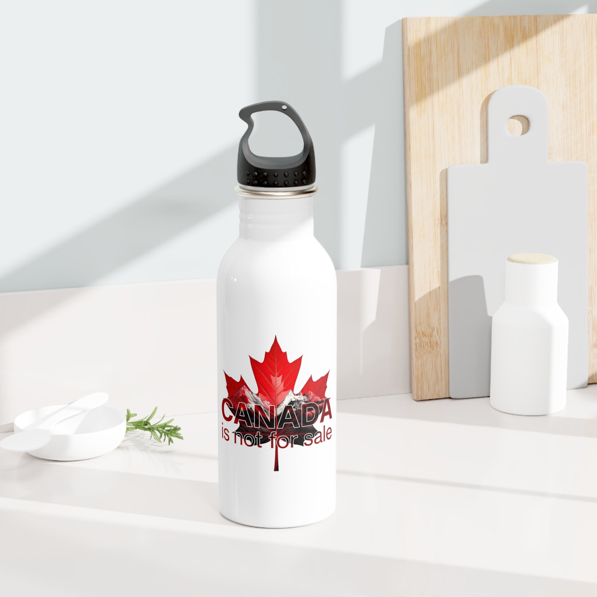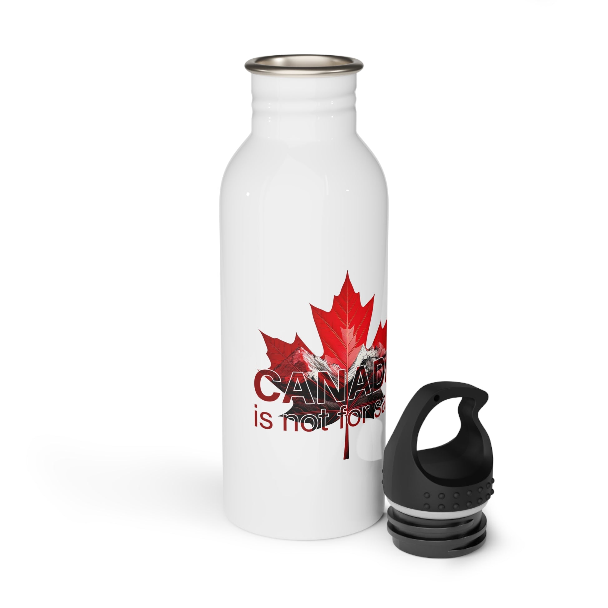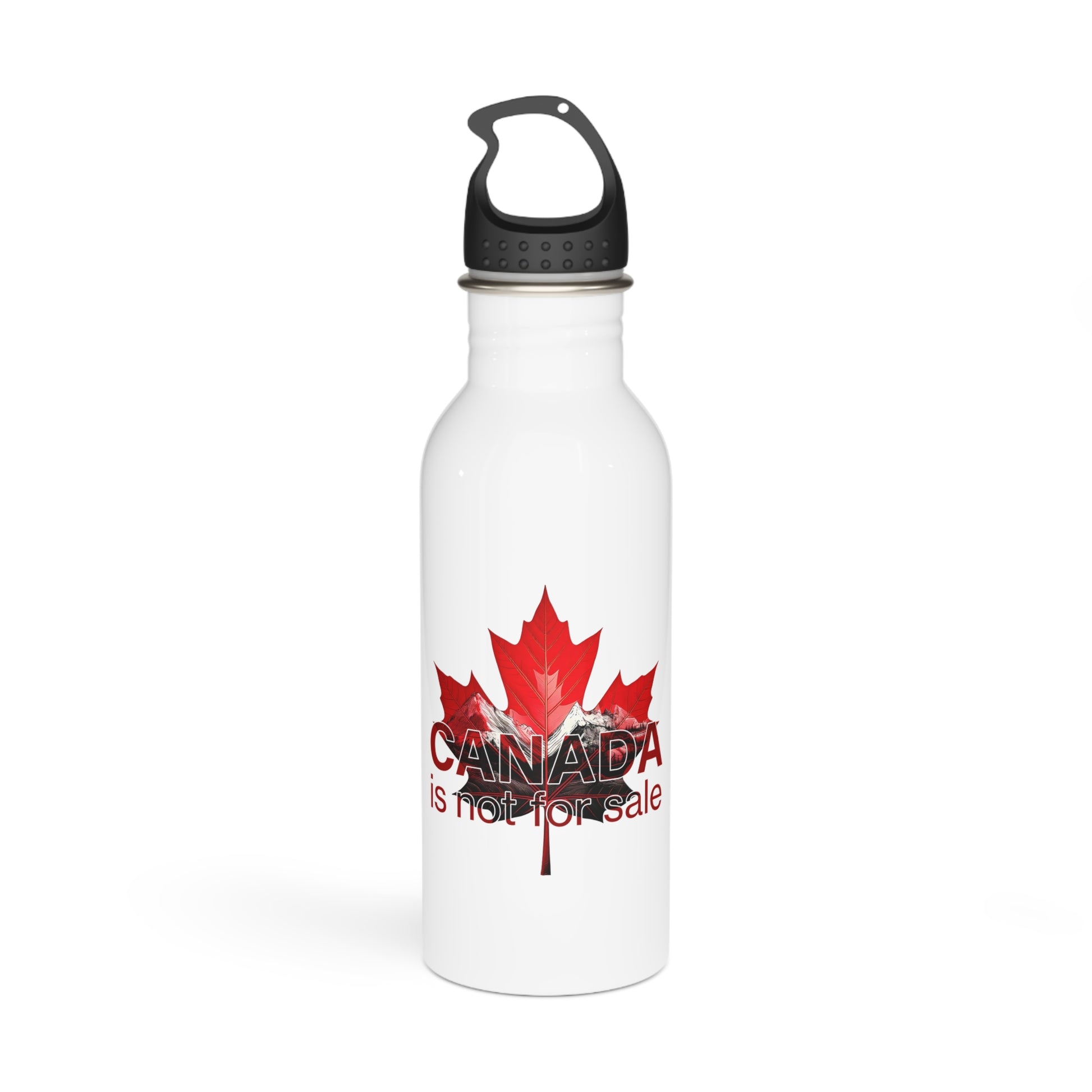 Steel Water Bottle “Canada is Not for Sale” – Red Maple Leaf and Mountains Design