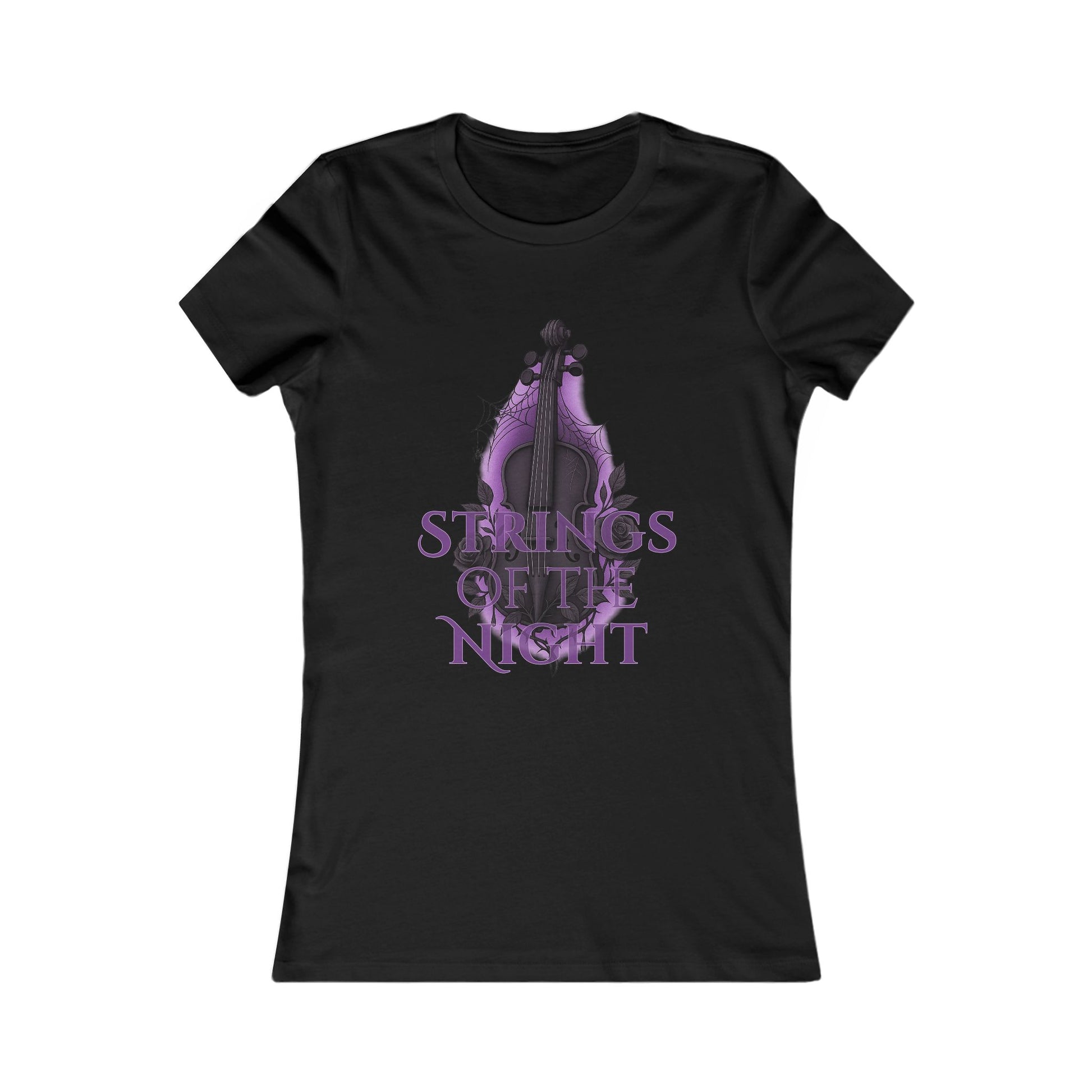 Strings of the Night – Women’s Elegant Gothic Tee | Spooky Music Lover’s Shirt