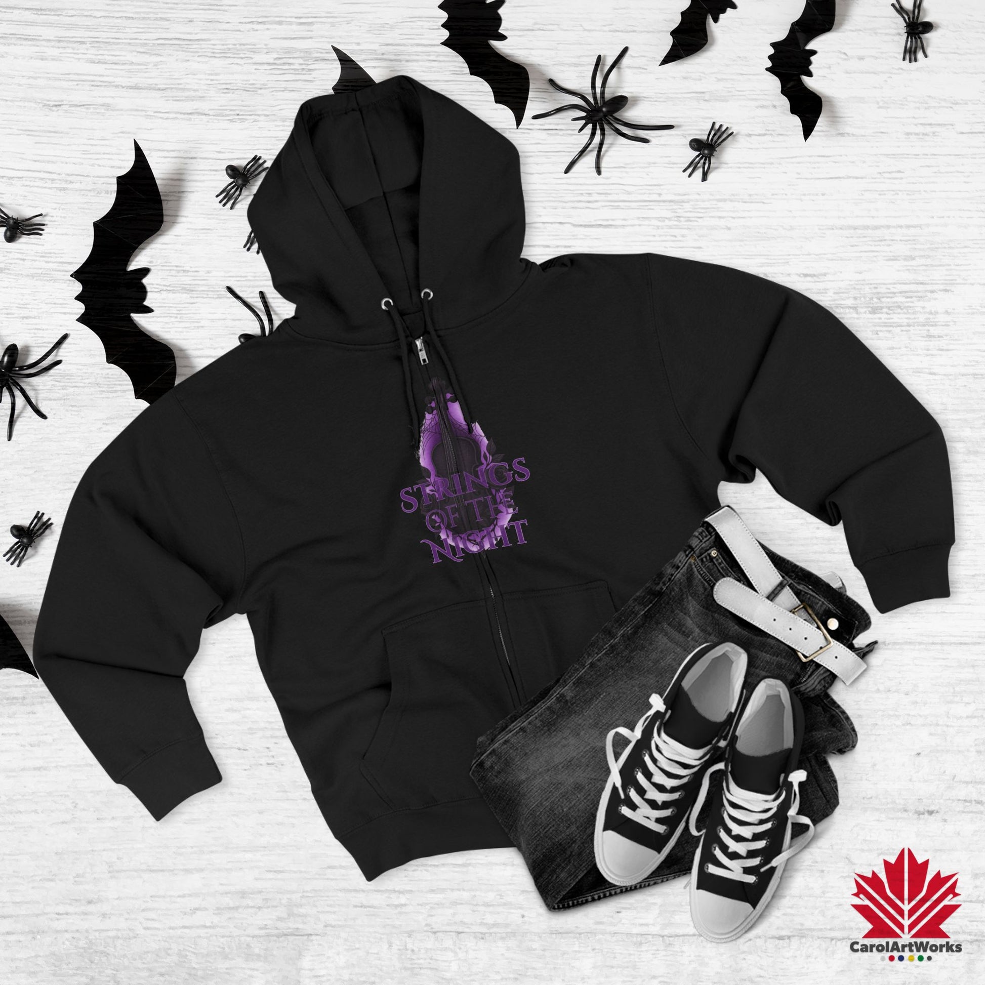 Strings of the Night – Zip Hoodie | Haunted Music Design for Halloween