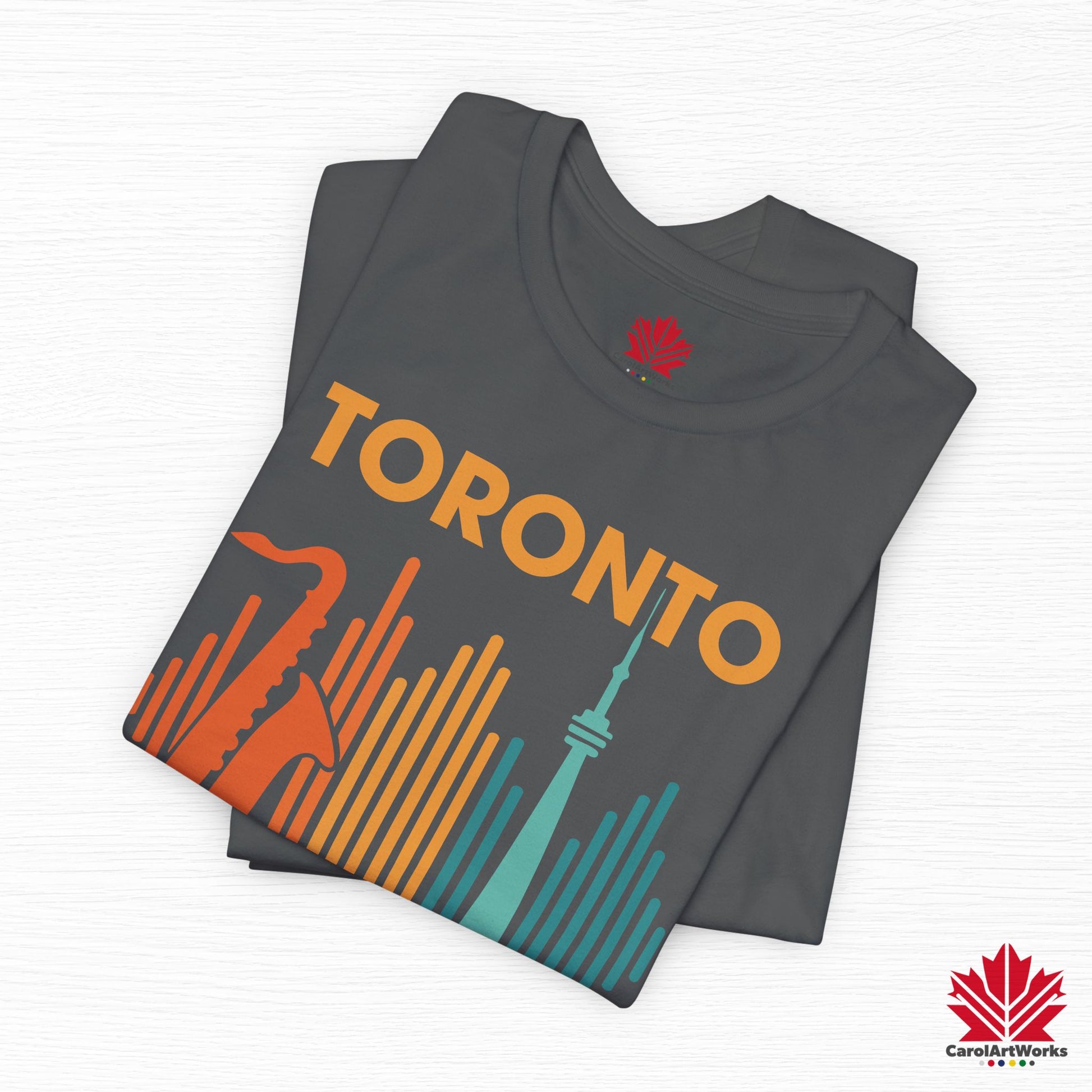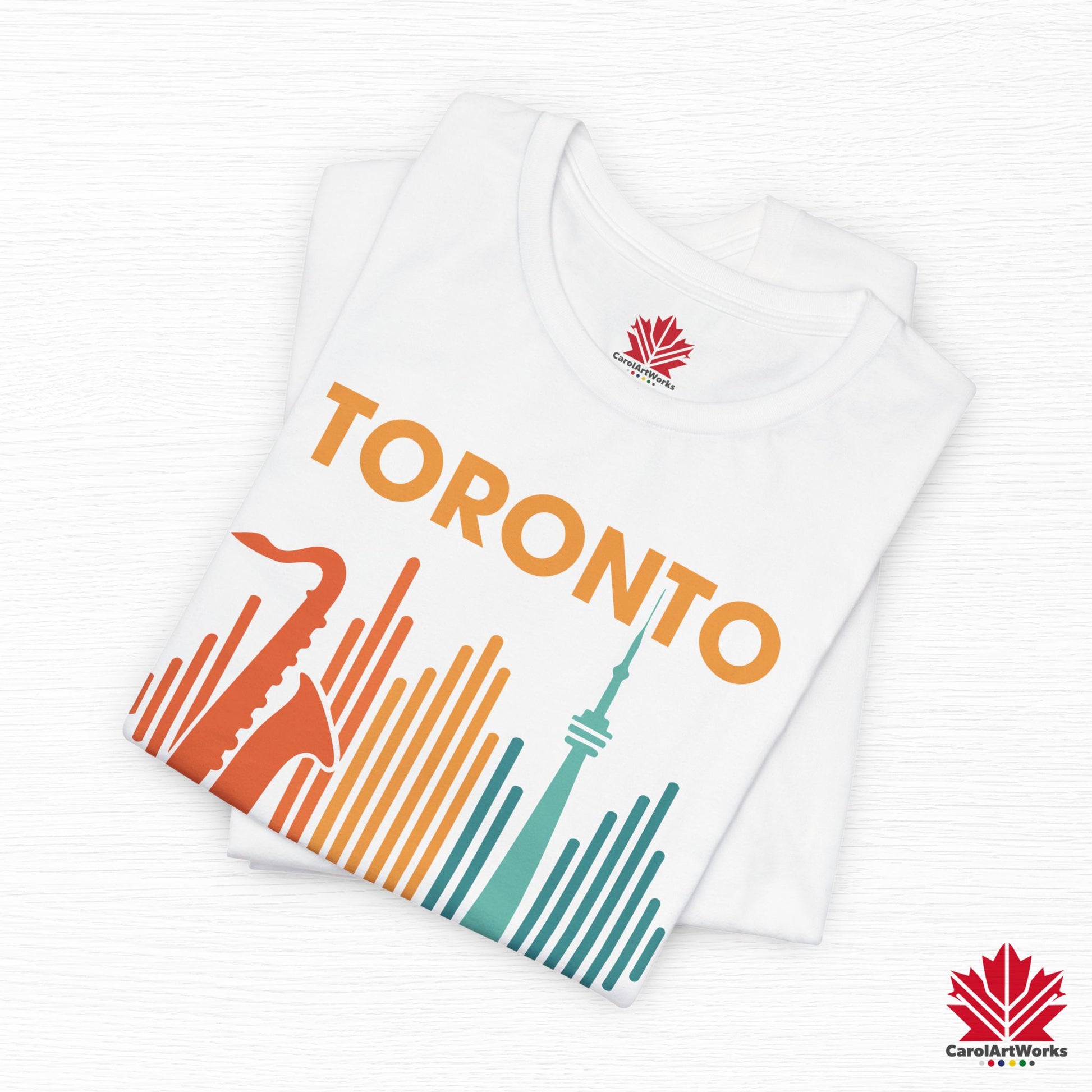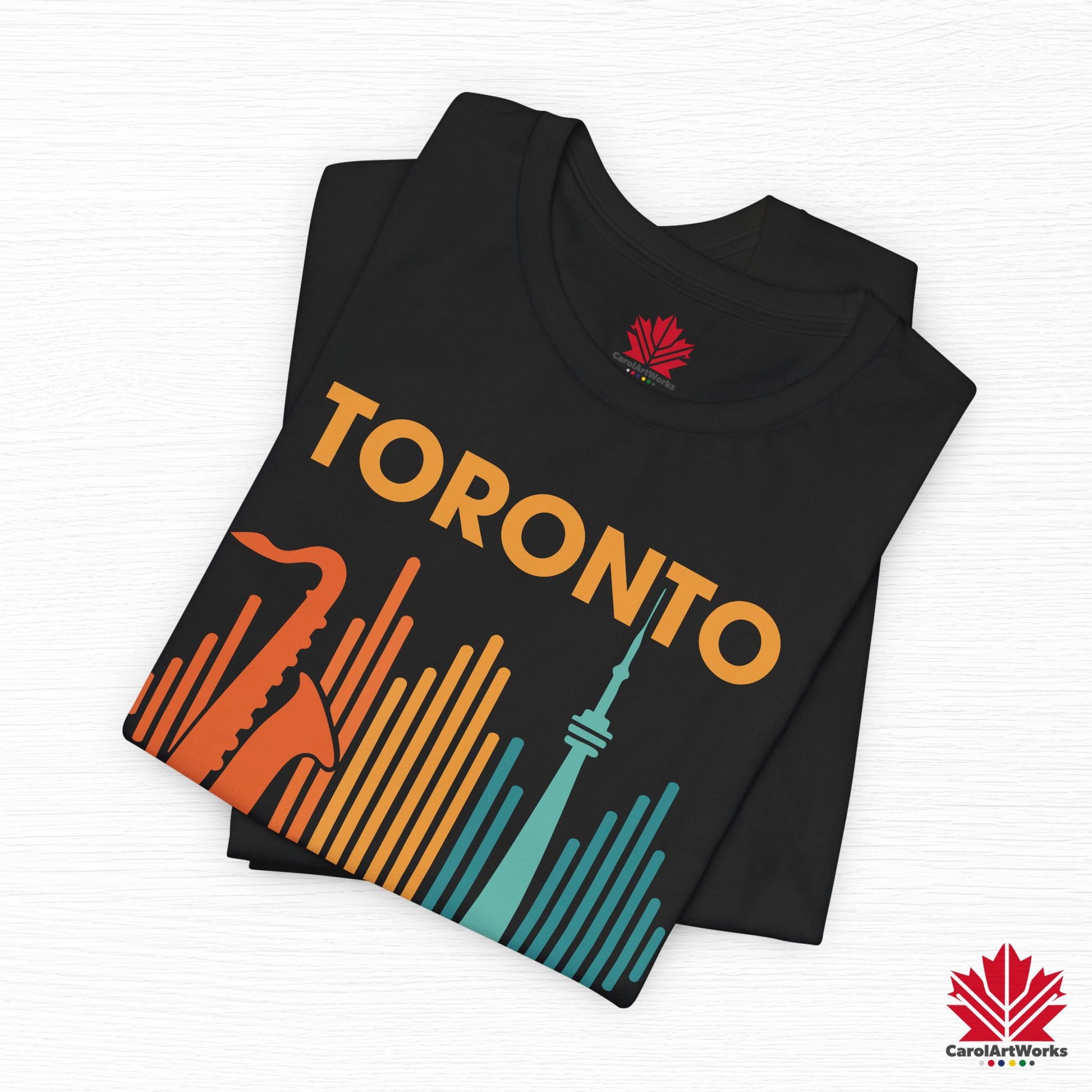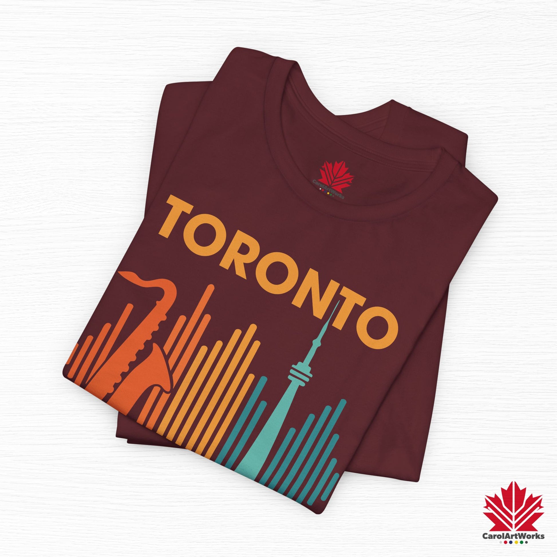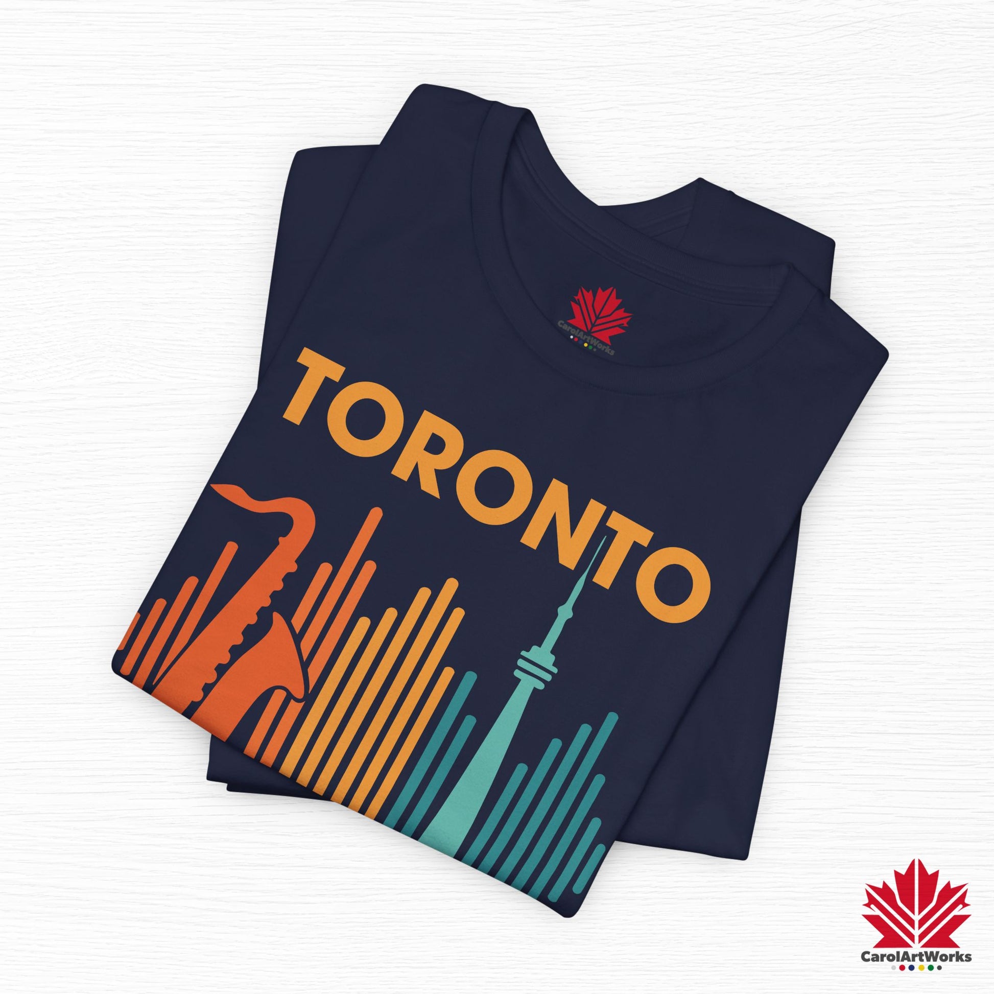 This design blends the warm pulse of live saxophone with the iconic CN Tower, framed by soundwaves in vintage festival hues. Whether you’re strolling through Queen West or vibing at a summer rooftop set, this one hits just the right notes.