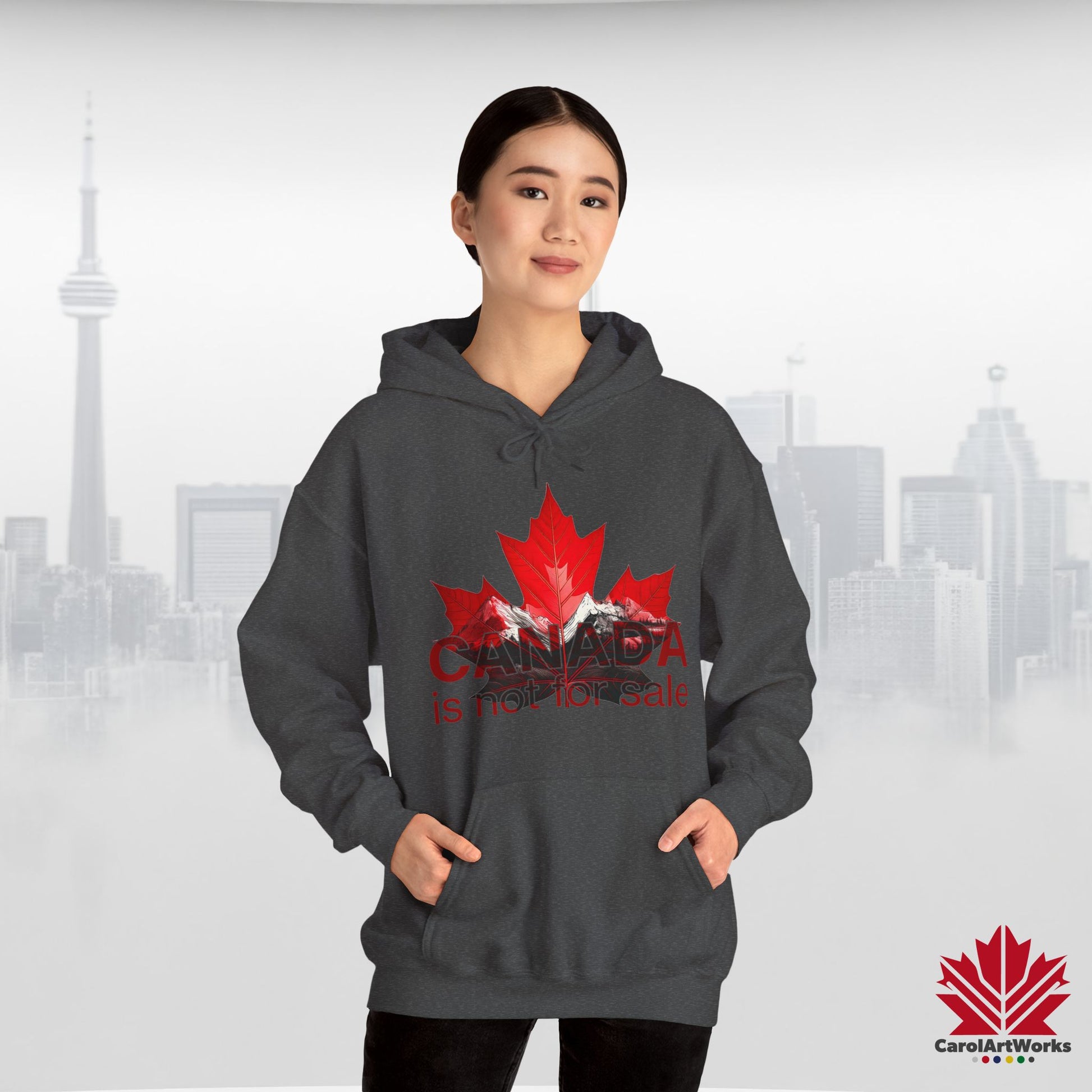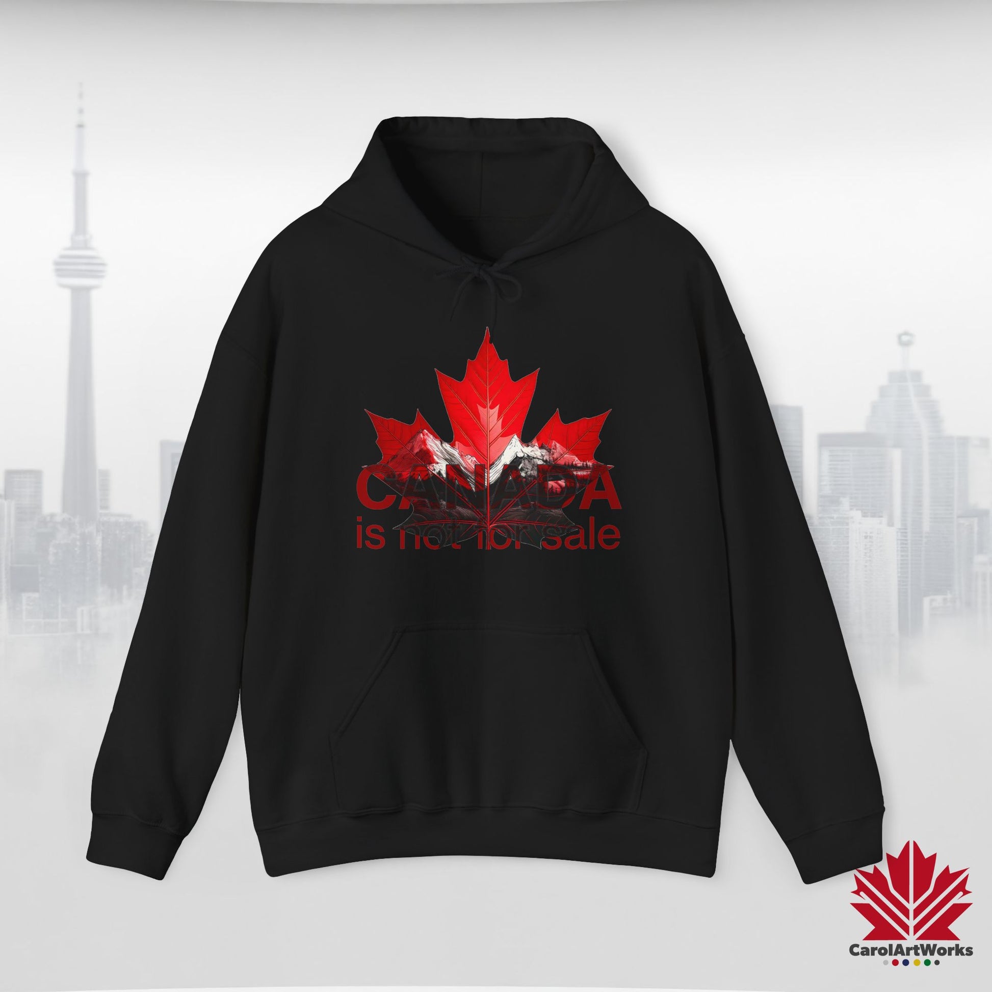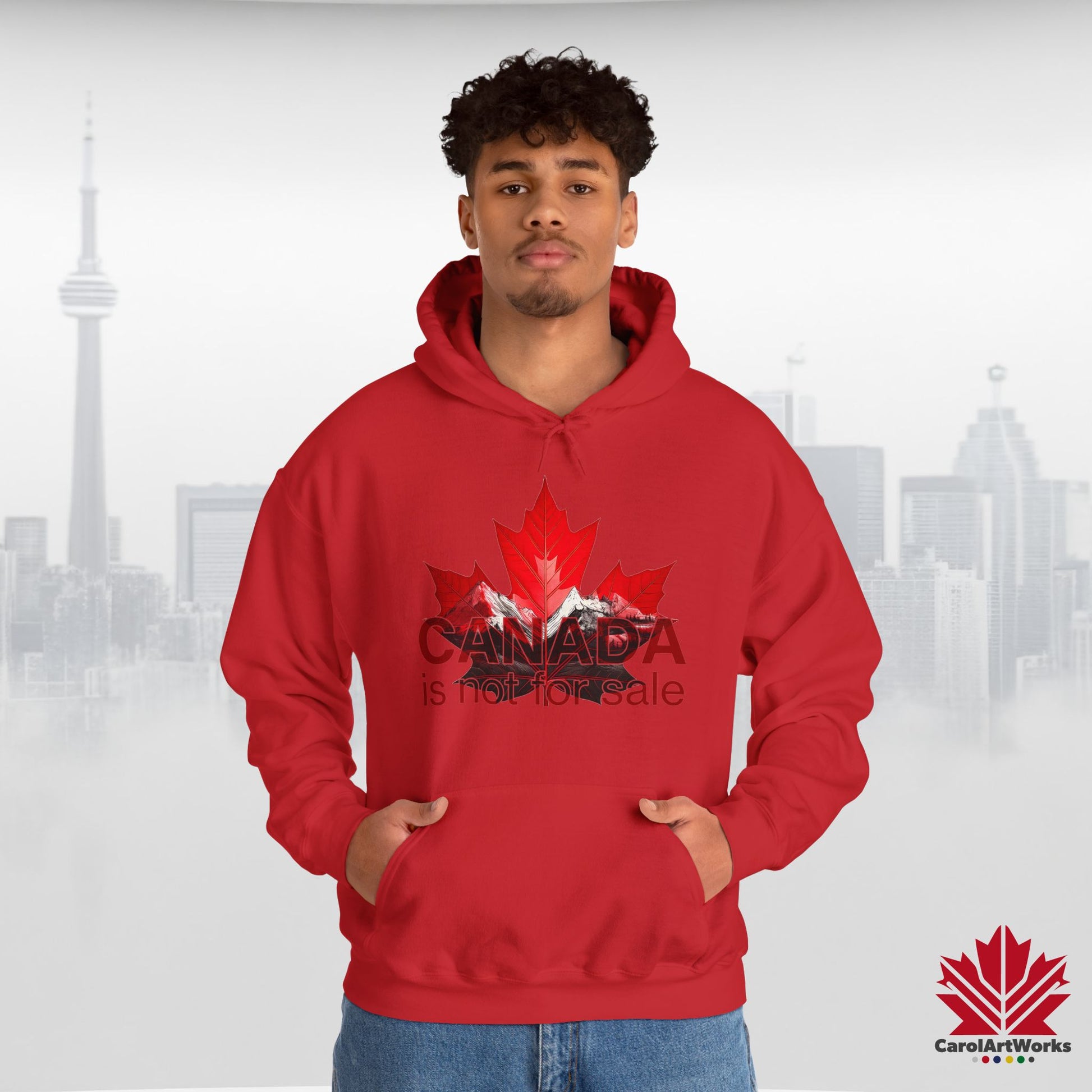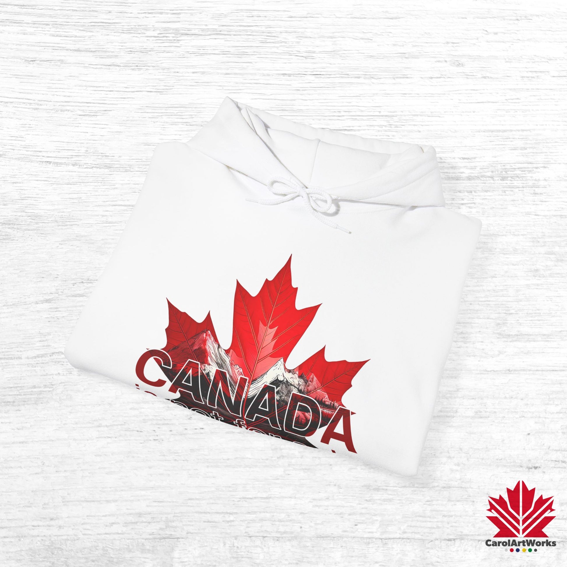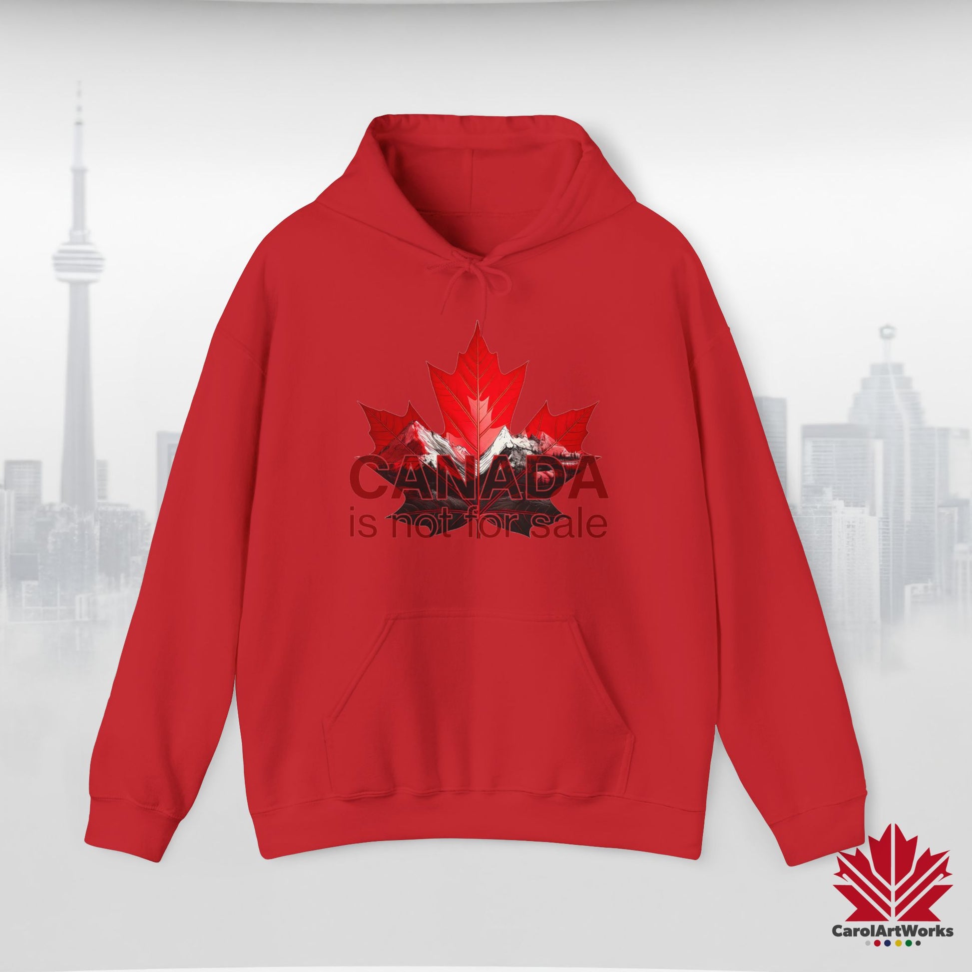 Unisex Hoodie “Canada is Not for Sale” – Red Maple Leaf and Mountains, Warm and Comfortable