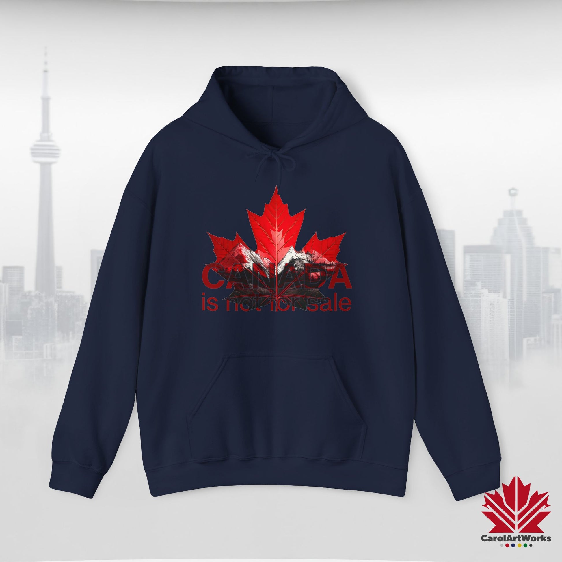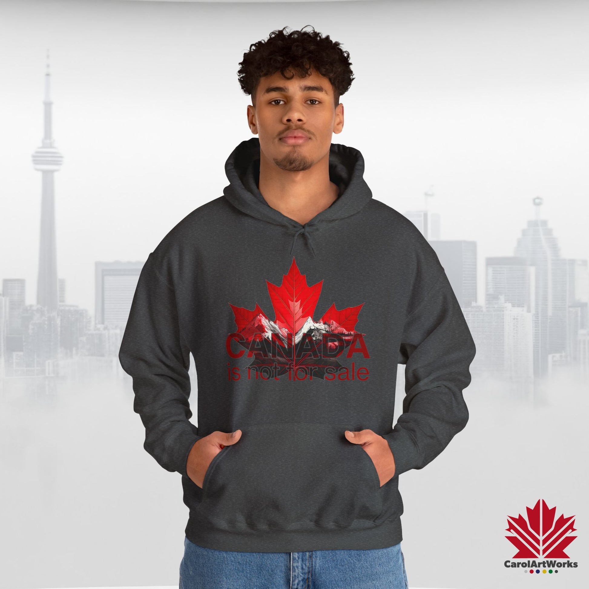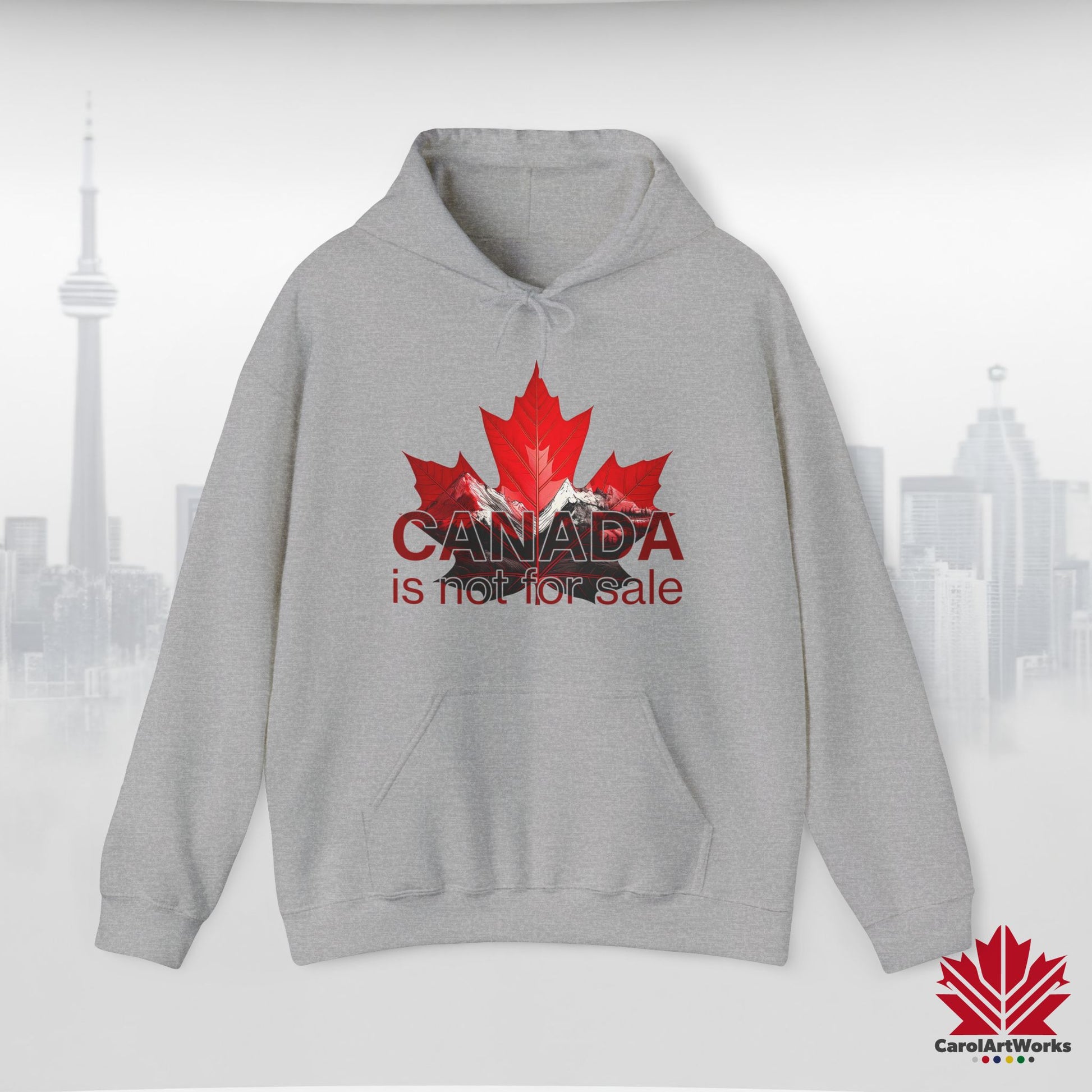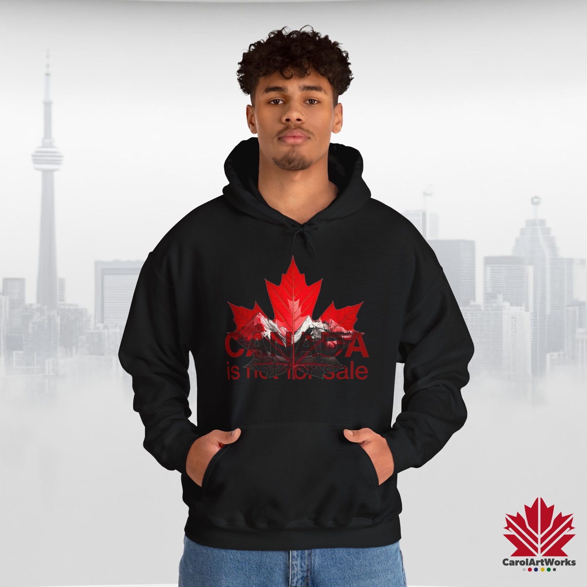 Unisex Hoodie “Canada is Not for Sale” – Red Maple Leaf and Mountains, Warm and Comfortable