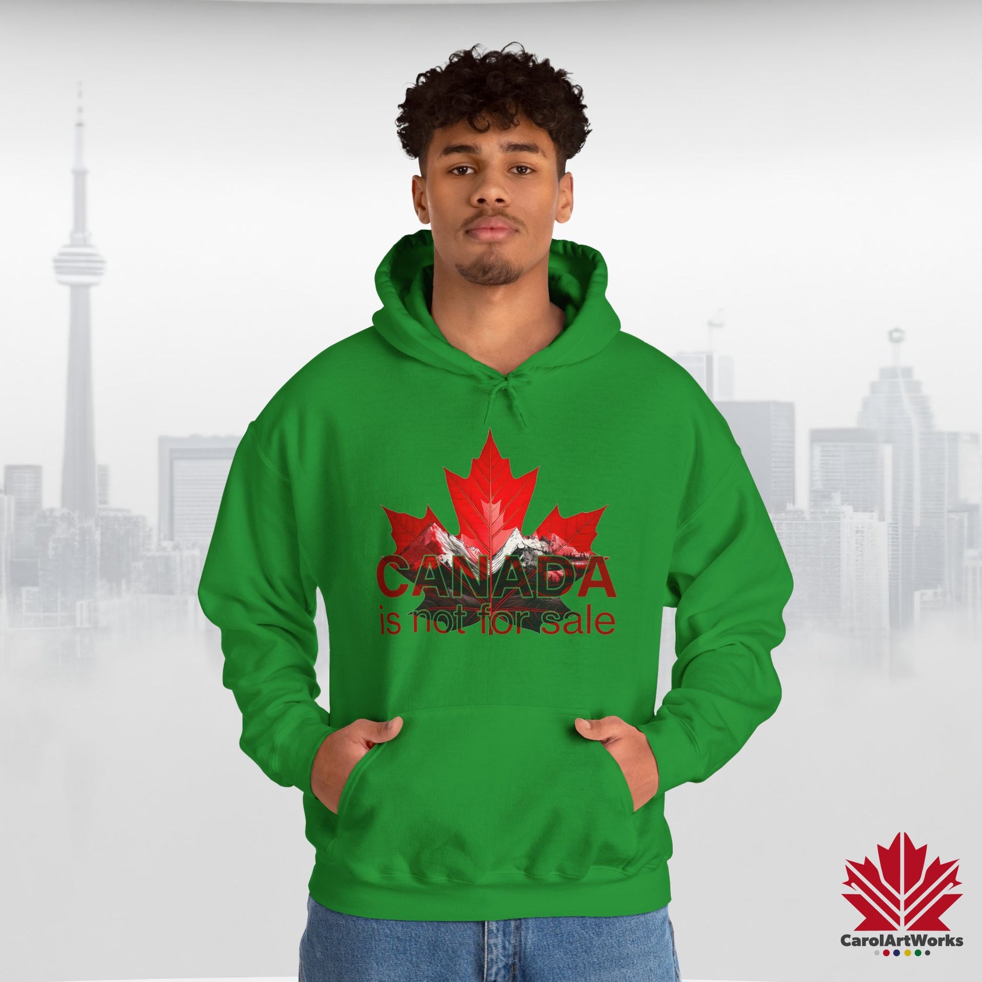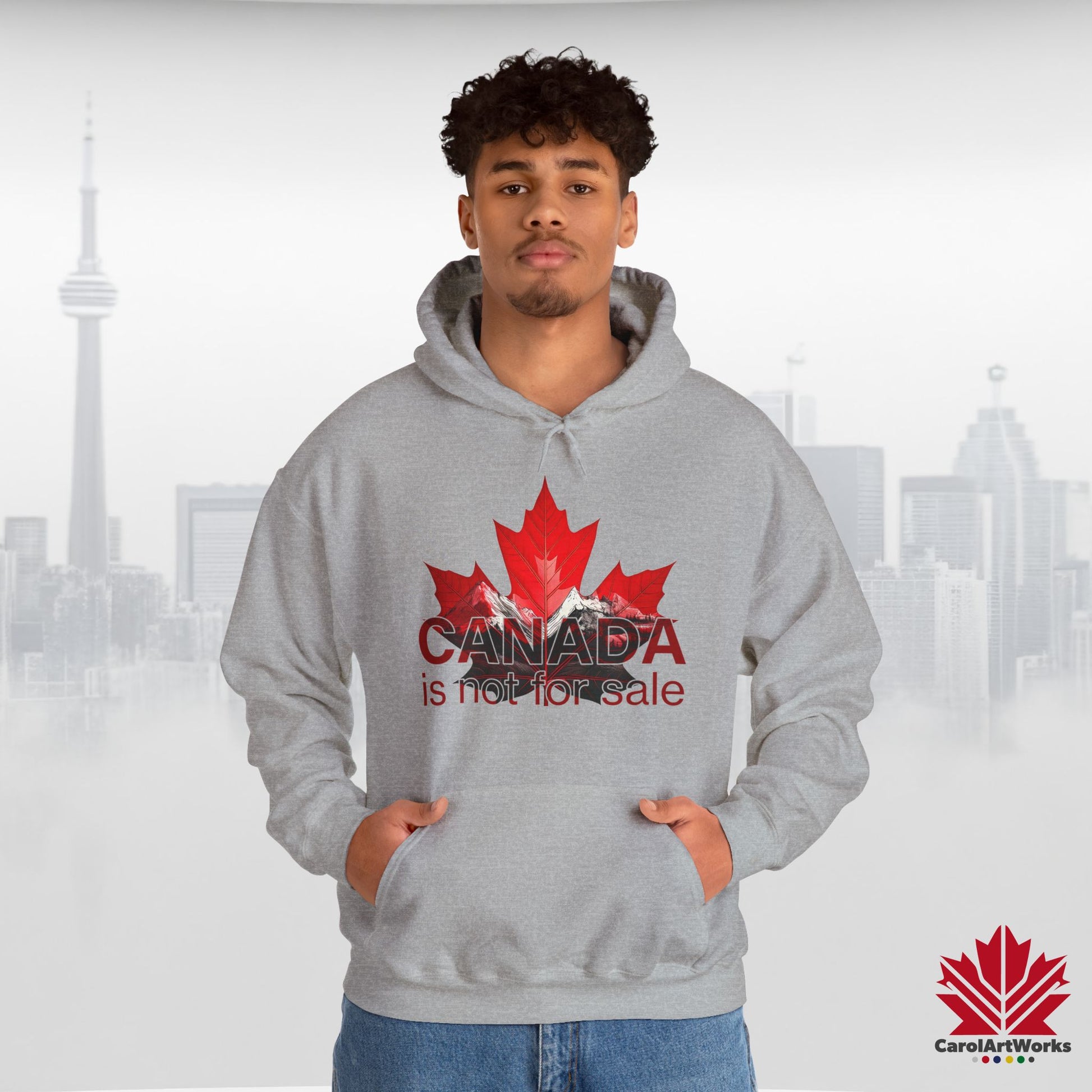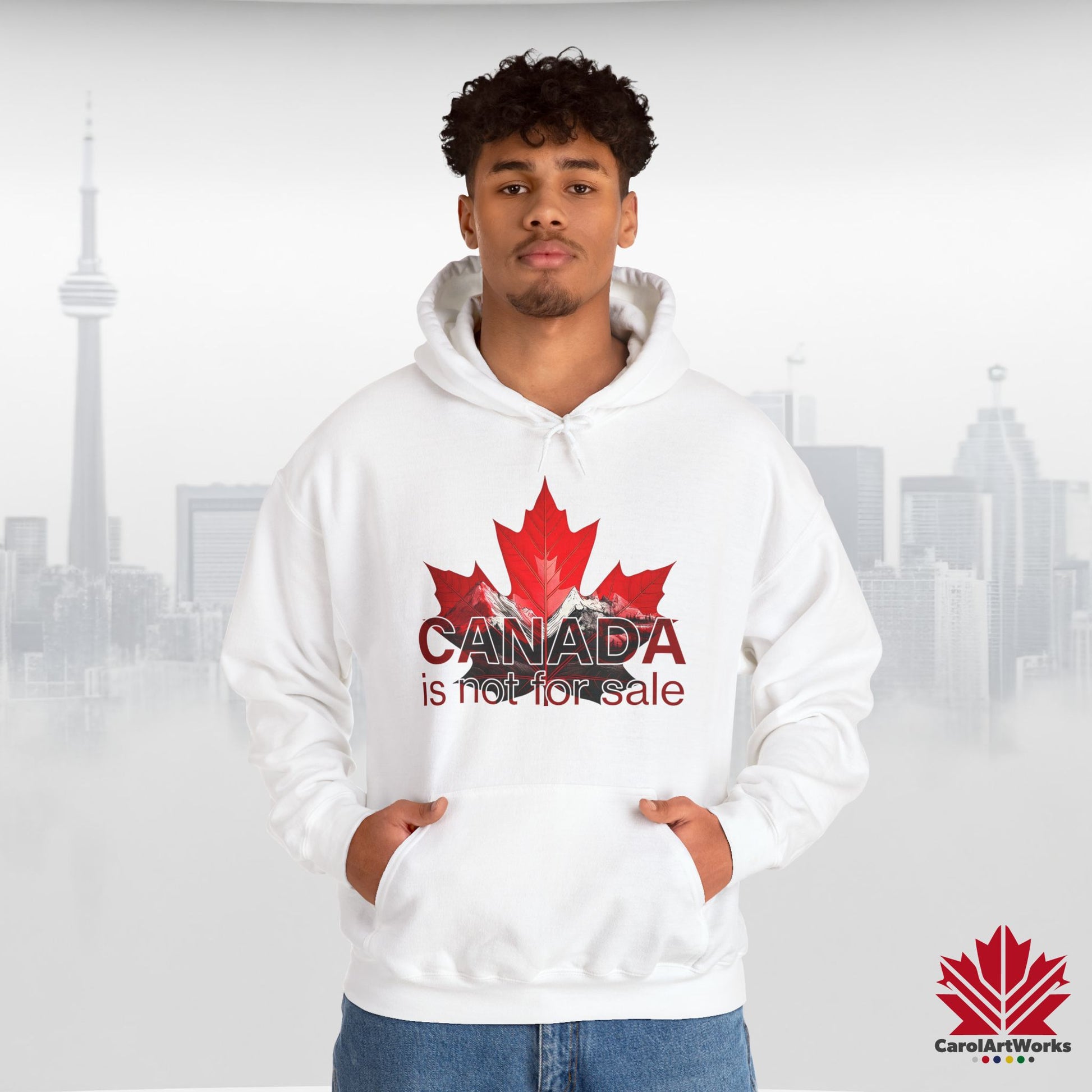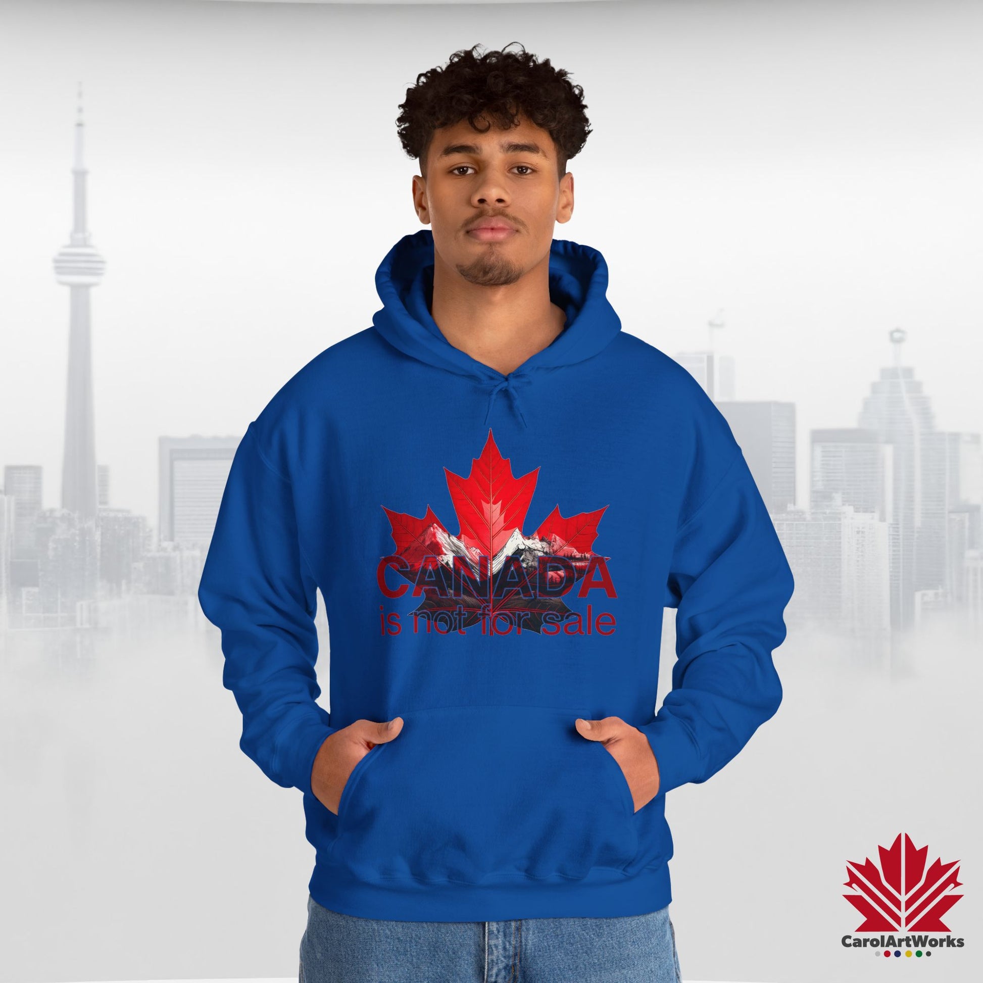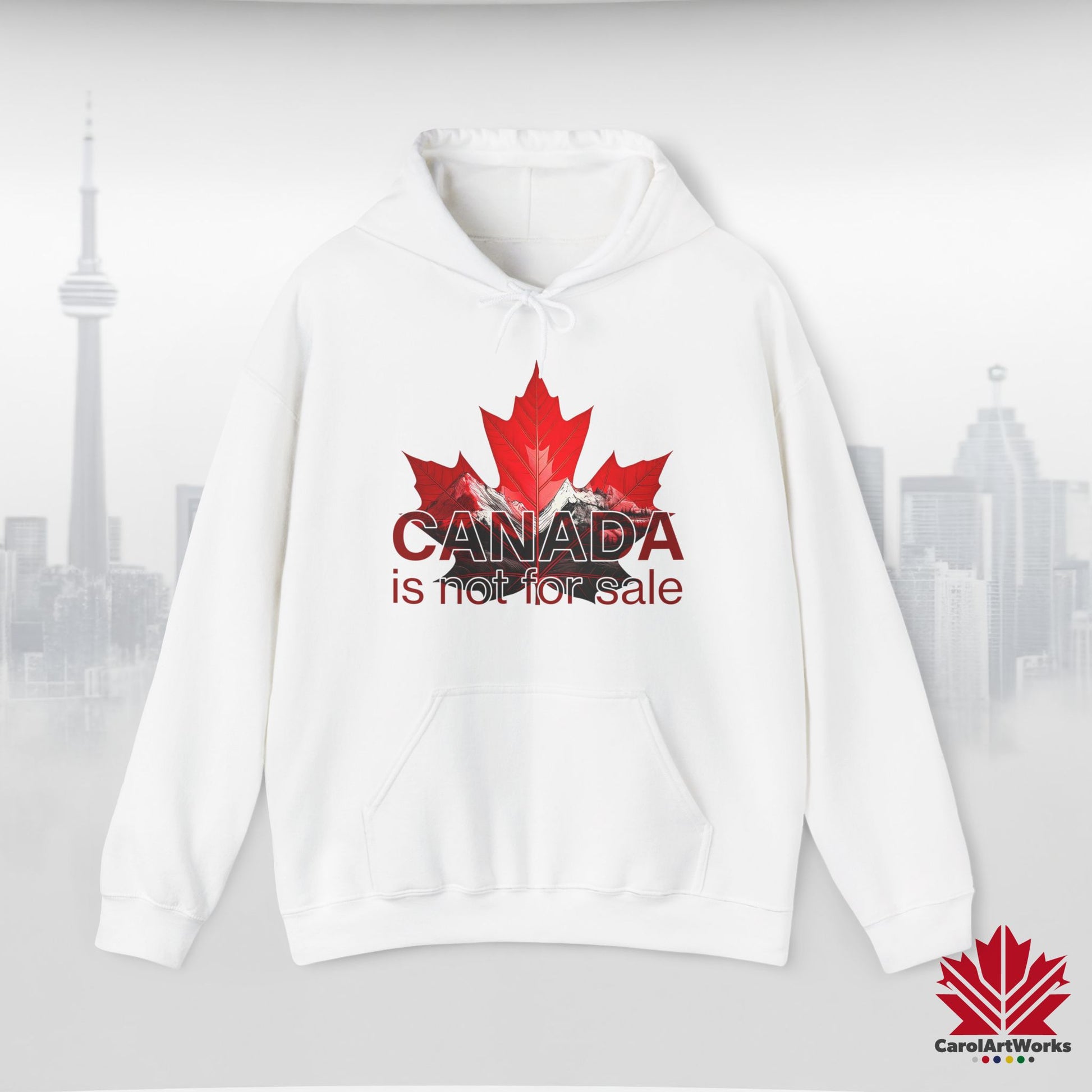 Unisex Hoodie “Canada is Not for Sale” – Red Maple Leaf and Mountains, Warm and Comfortable