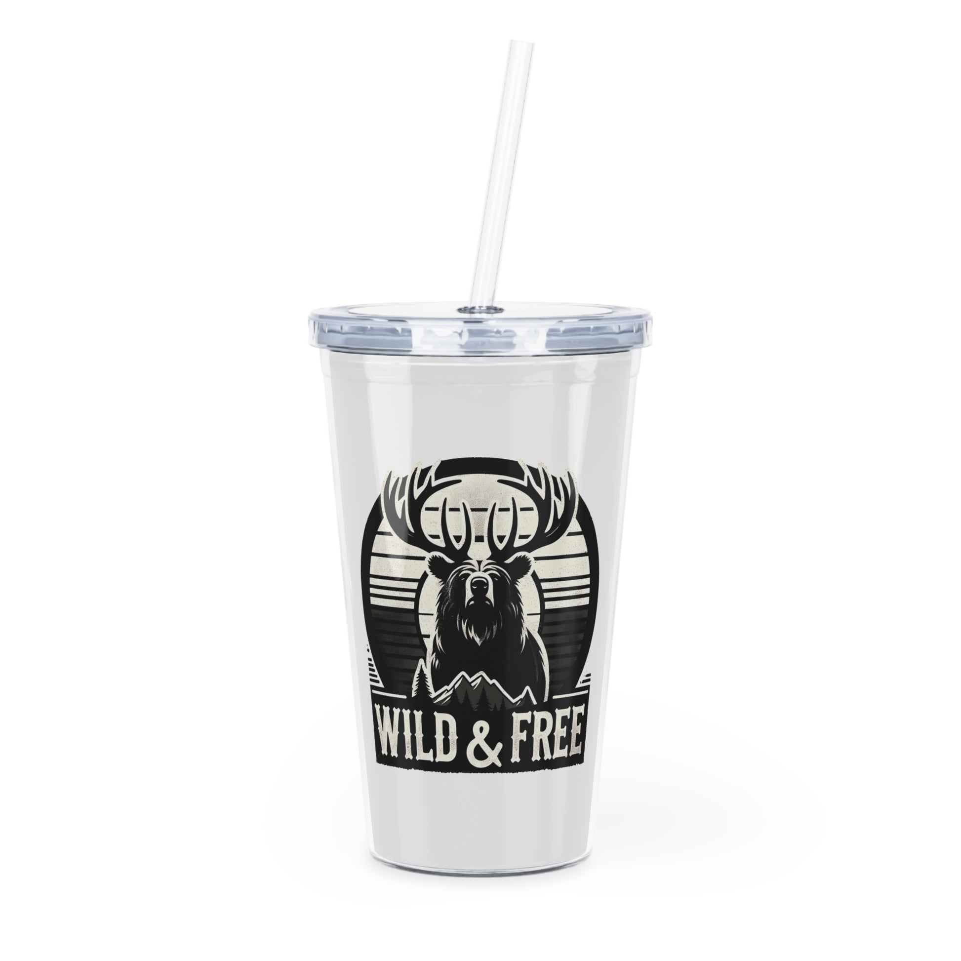 "Wild & Free" Plastic Tumbler with Straw - Perfect for Nature Lovers